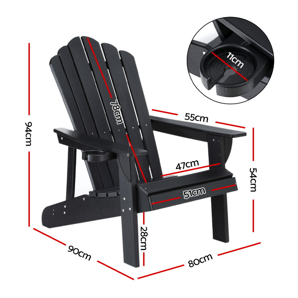 Gardeon Outdoor Chairs HDPE Adirondack Beach Chair Sun Lounge Patio Furniture Garden Black