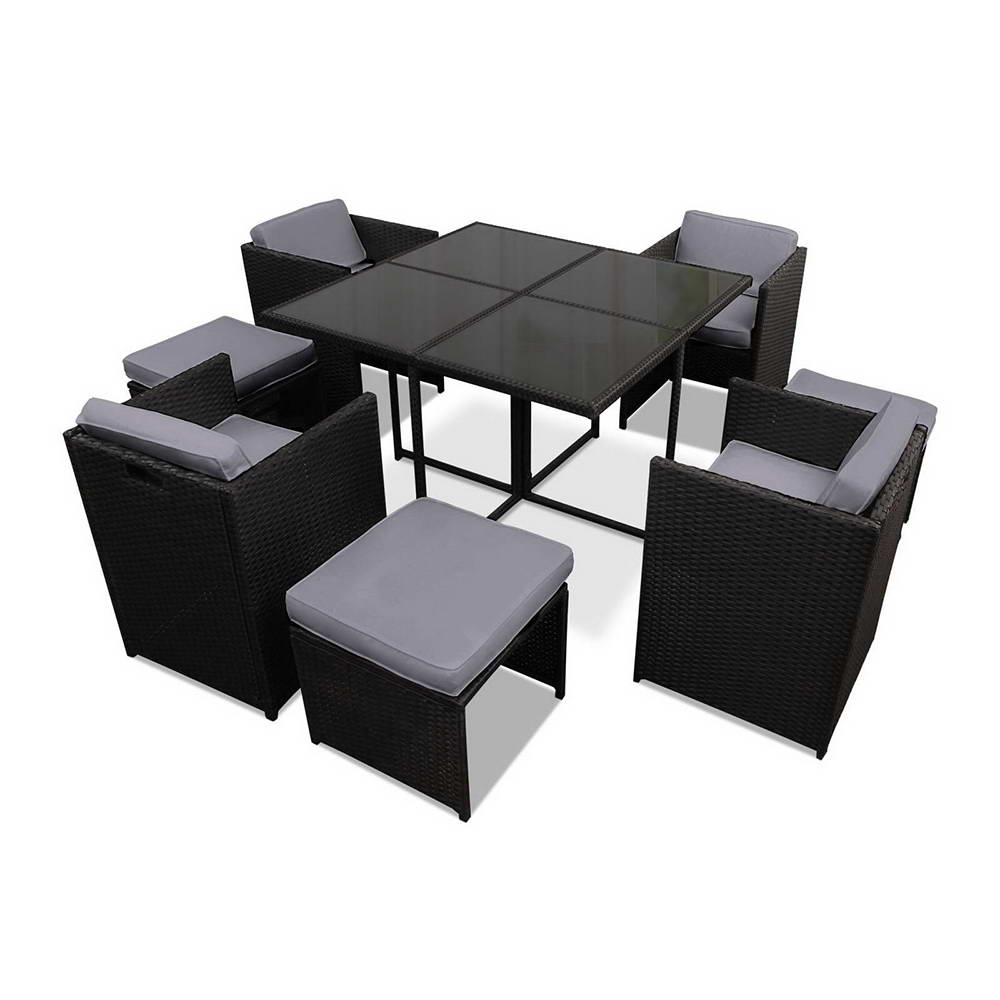 Gardeon Outdoor Dining Set 9 Piece Wicker Table Chairs Setting Black