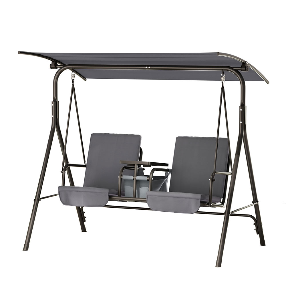 Gardeon Outdoor Swing Chair Garden Chair Canopy Cup Holder 2 Seater Grey