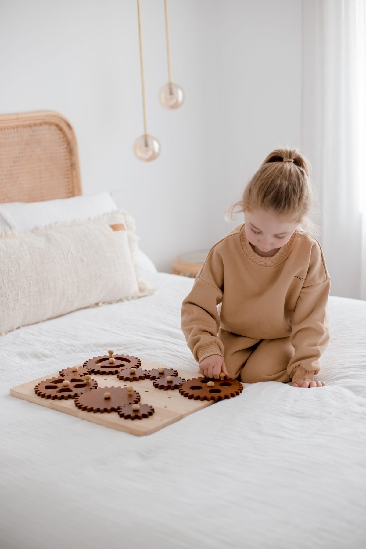 Our Large Gear Construction set measures 36cm x 45cm x 2cm. Each set comes with an interchangeable gear board and 10 gears ranging from 15cm to 8cm. Our Gear Construction Set is an excellent way to introduce STEM concepts with your children. Helping to promote problem-solving, critical thinking, and perseverance. Depending on the number of gears linked together will then determine the strength needed to move them.