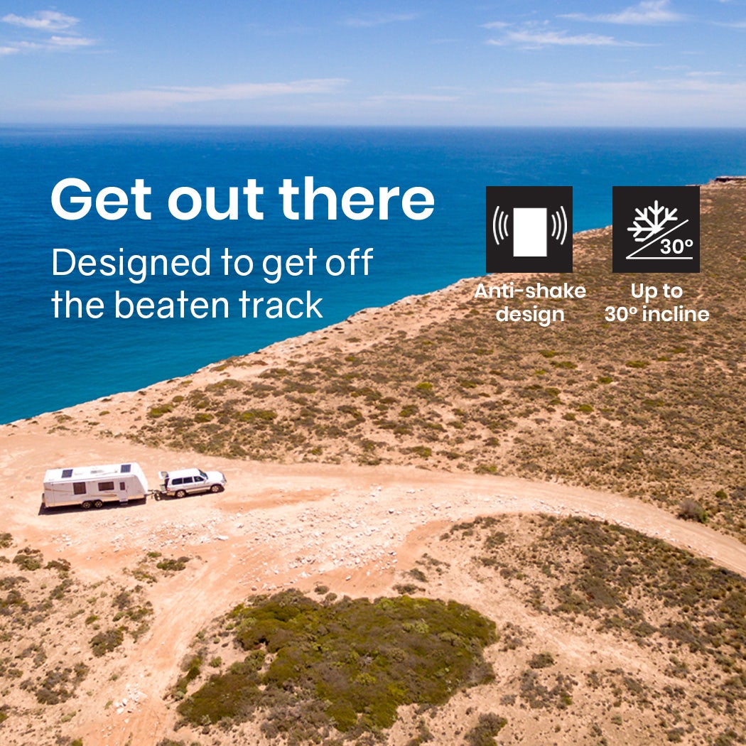 It boasts a generous capacity. Comfortably cater for long road trips in your motorhome or caravan. It has a 44L freezer compartment, and 81L refrigerator section with crisper, adjustable shelves and convenient egg tray. The rugged hinges, locking doors, adjustable feet and the ability to operate at up to a 30-degree incline make it ready for camping off the beaten path, or use on a yacht.