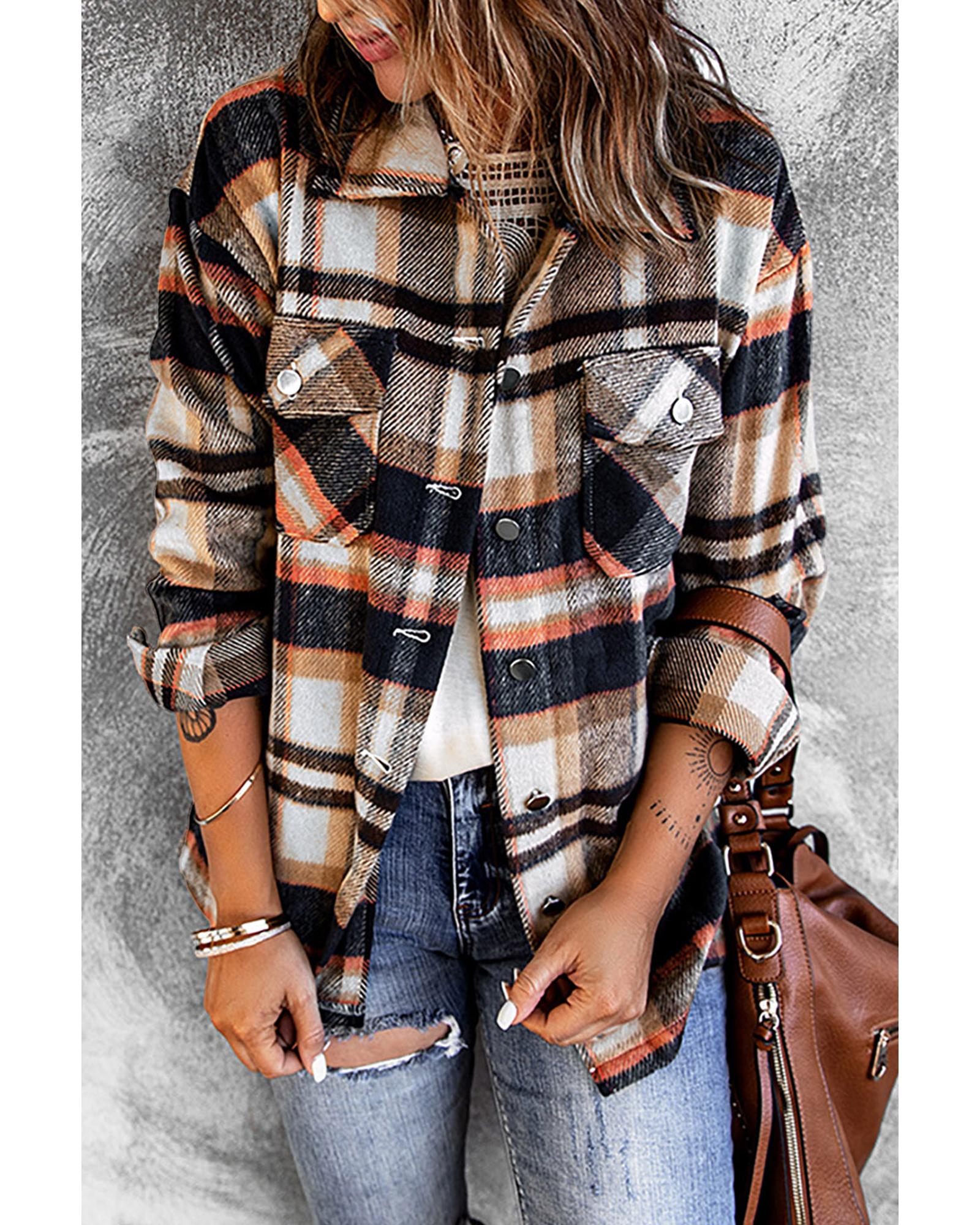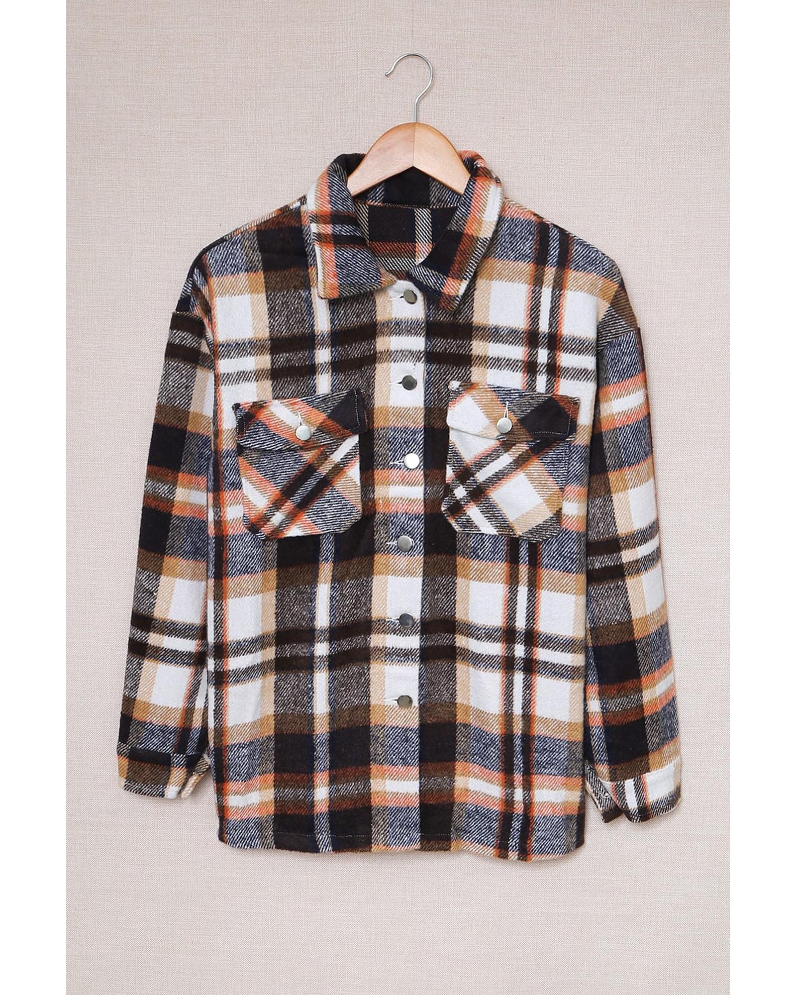 Geometric Plaid Print Pocketed Shacket – 2XL
