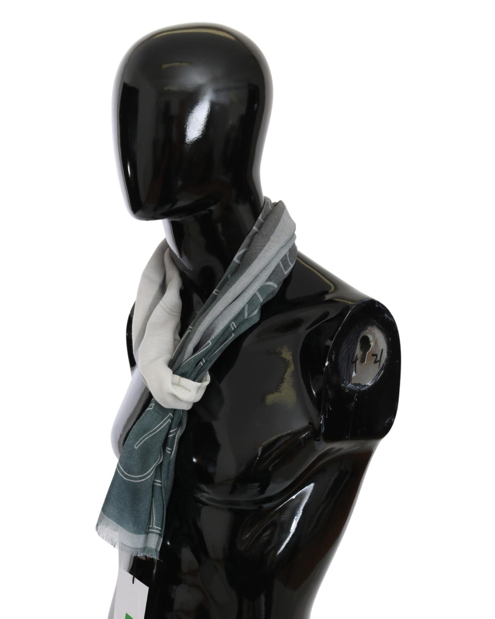GF FERRE Blue Gray Patterned Scarf One Size Women