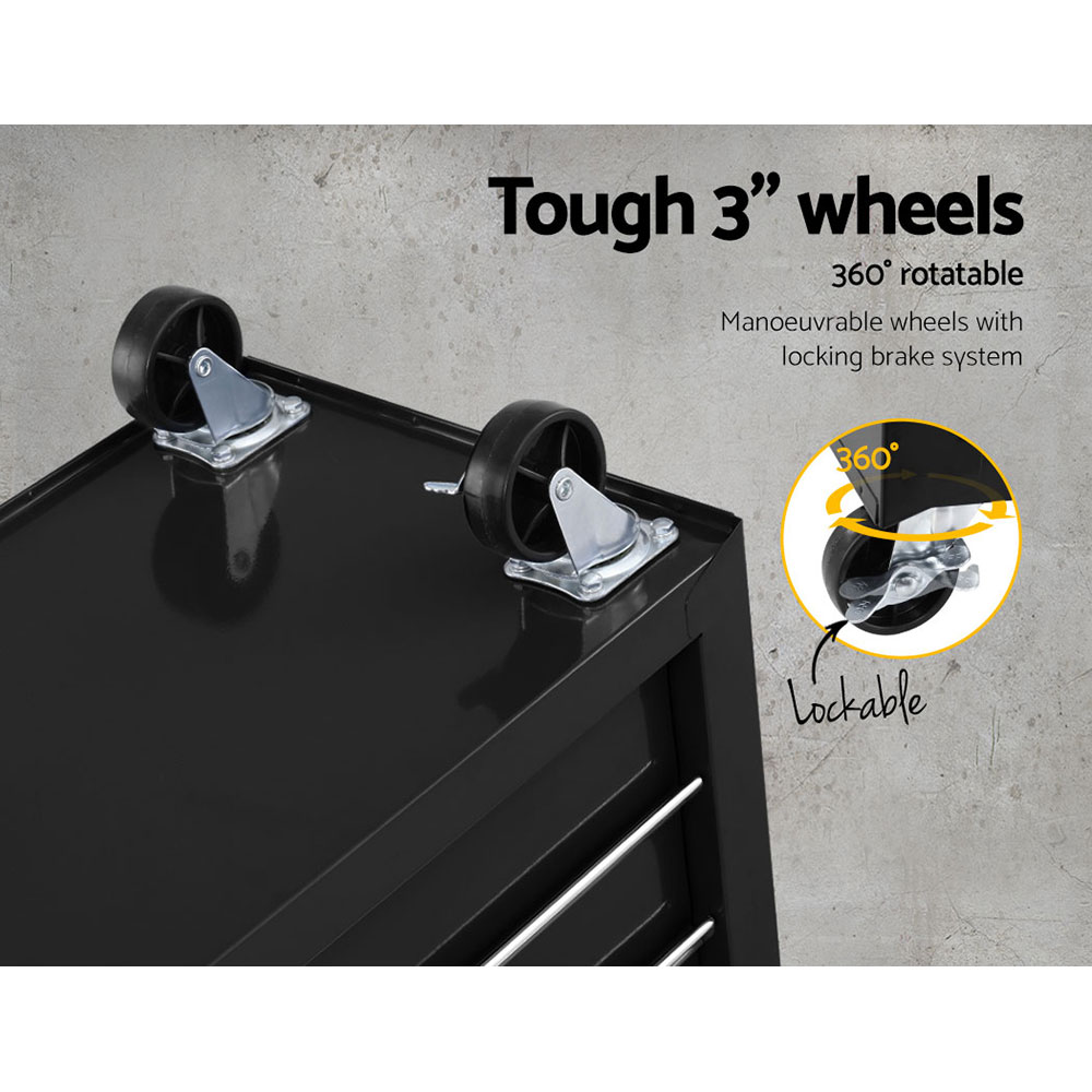 This robust, multi-drawer Giantz Tool Trolley is an essential for any workshop. Crafted from durable steel, it features smooth ball-bearing slides for easy access and a secure lock system for safety. Its spacious design accommodate tools of all shapes, complete with non-slip liners. The chest is also mounted on omni-directional castors with locakble front wheels, ensuring a smooth maneuverability and stable positioning. Sleek and functional, it’s perfect for organizing and protecting your valuable tools.