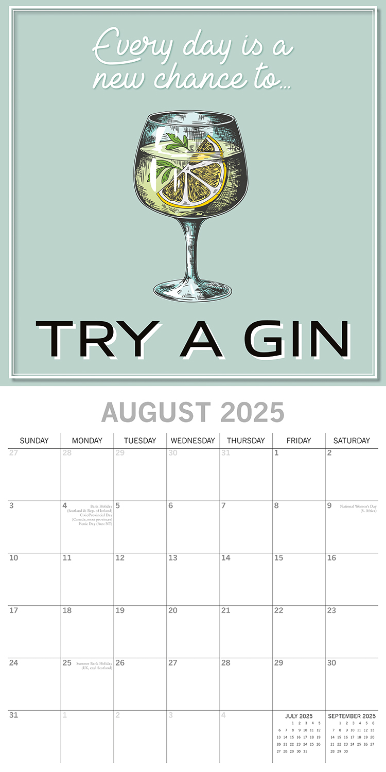 Gin – 2025 Square Wall Calendar 16-Month Premium Planner Christmas New Year Gift