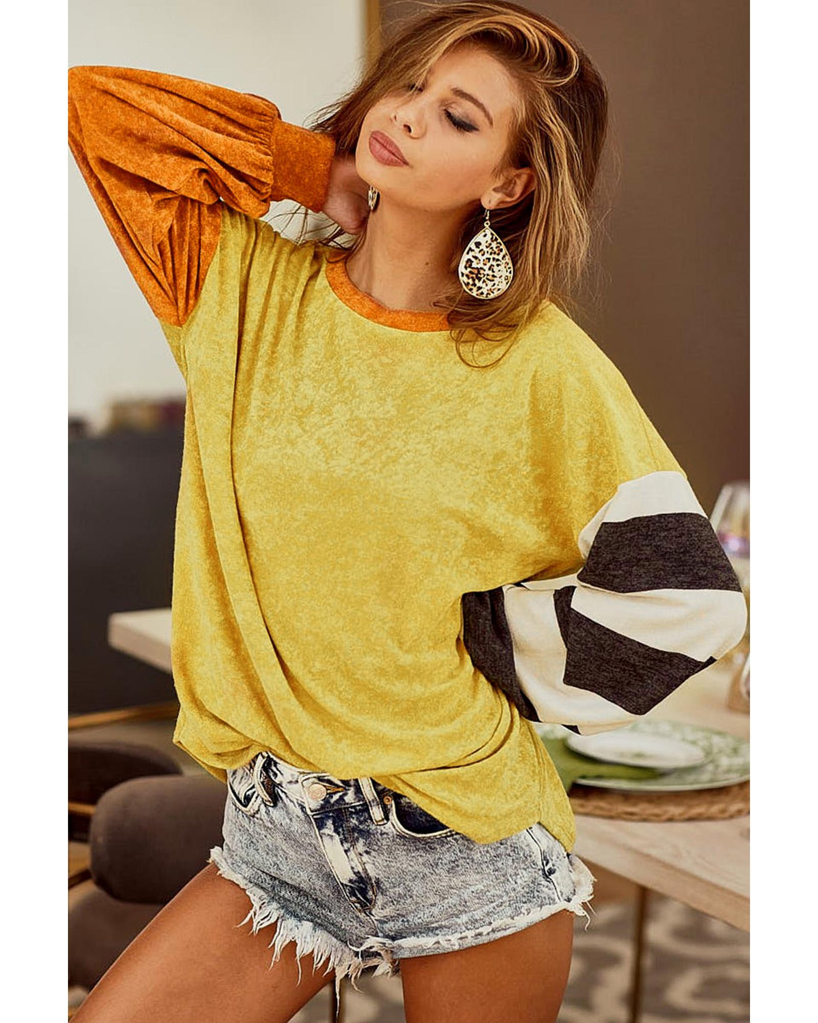 - Ginger Colorblock Striped Sleeve Patchwork Drop Shoulder Top