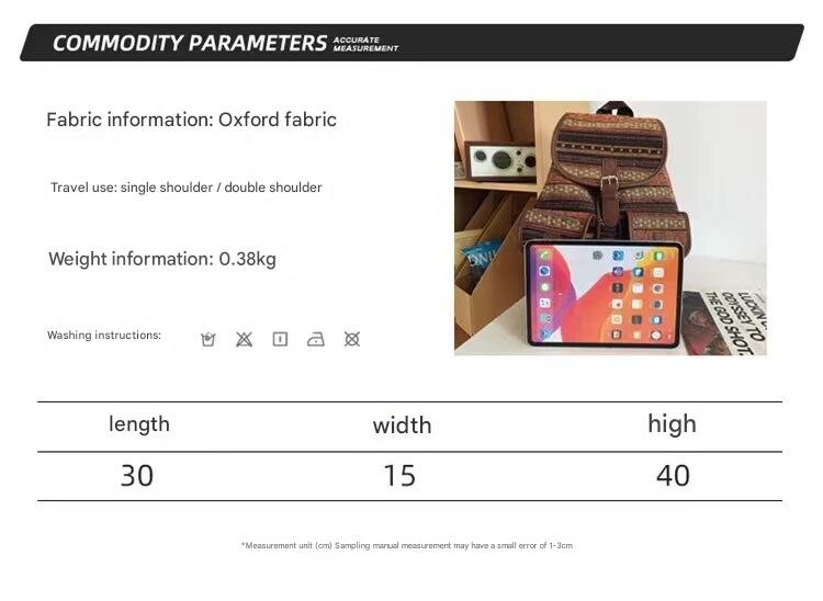 The unique ethnic pattern, combined with the durable canvas construction, makes this backpack both stylish and long-lasting. The drawstring closure and flap with buckle straps add a touch of vintage charm, while the multiple pockets provide ample space for organizing your belongings. Whether you’re heading to class, exploring a new city, or attending a festival, this boho backpack is the perfect companion. It is big enough to fit everyday essentials and a book!