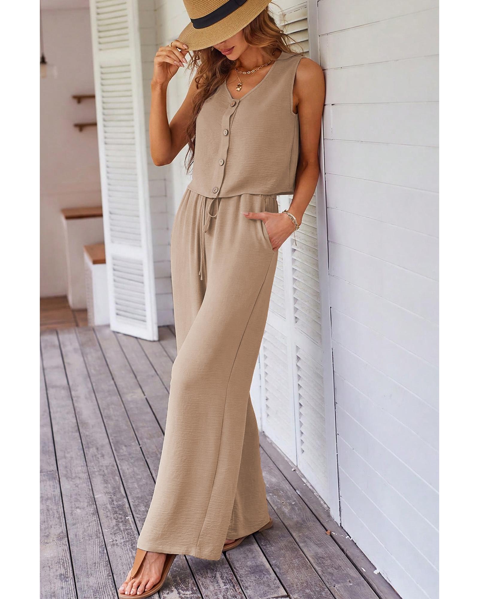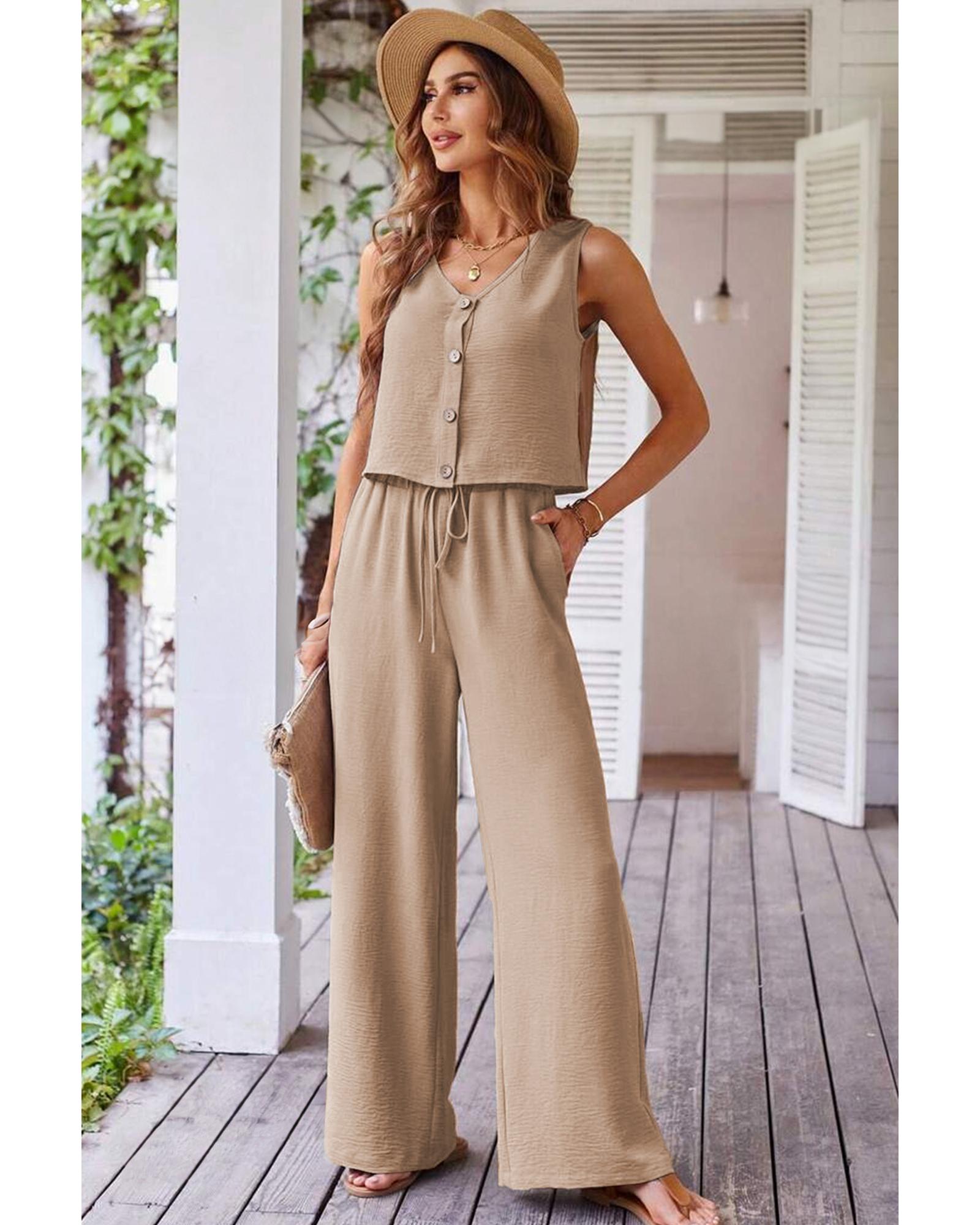 - Stylish buttoned vest and wide leg casual pants coordinate set
