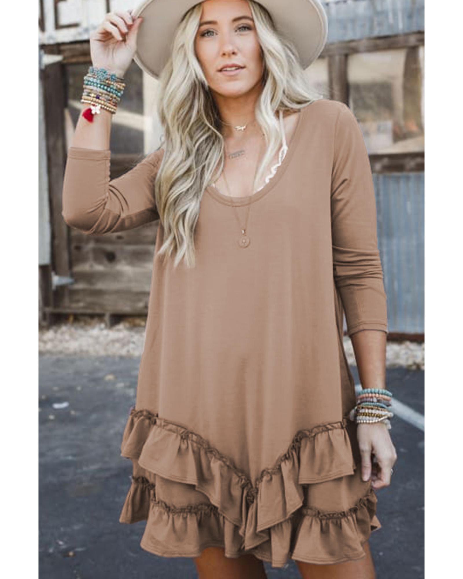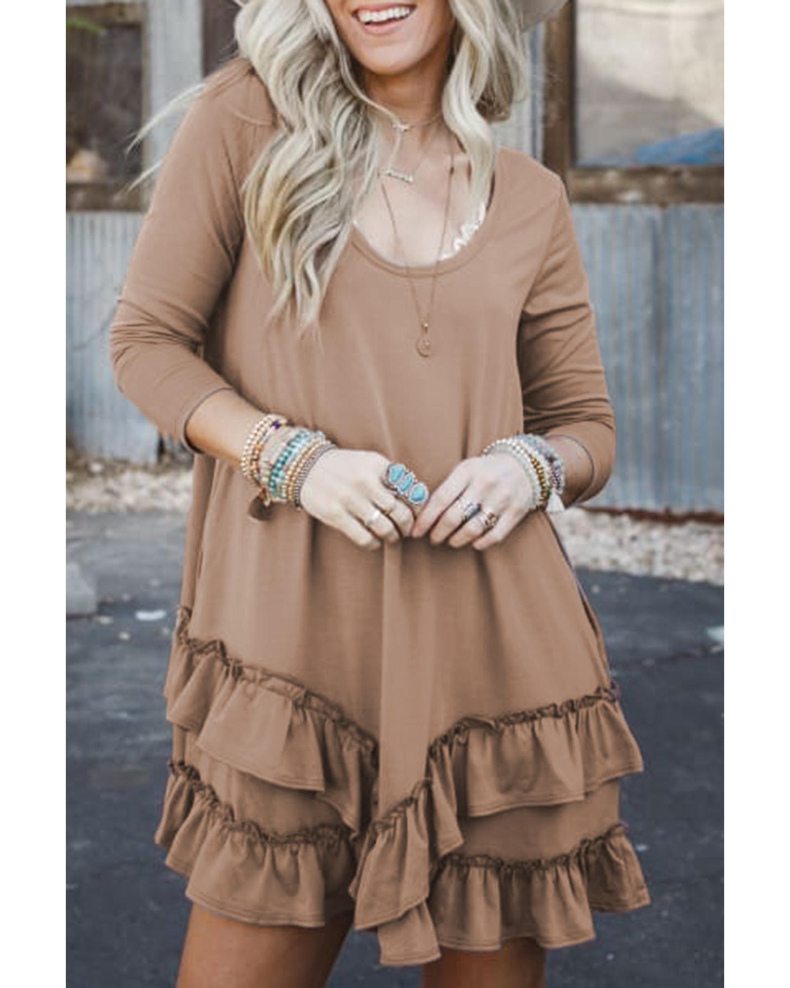 Goat Scoop Neck Tiered Ruffled Hem Long Sleeve Mini Dress – XL