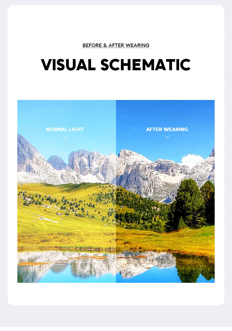 • Anti-Glare Lens: Reduce light intensity and prevent eye fatigue