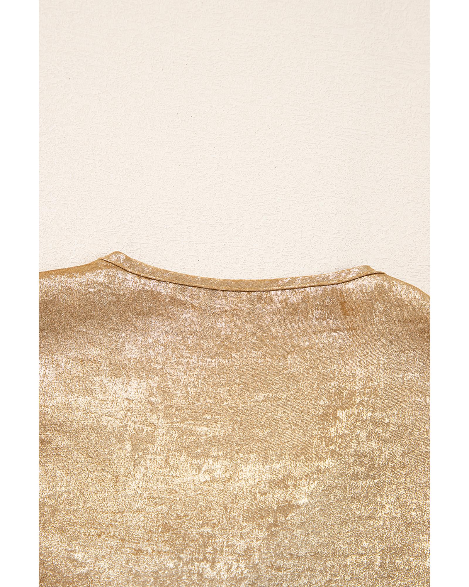 Gold Bow Tie Front Puff 3/4 Sleeve Ruffle Hem Blouse – XL