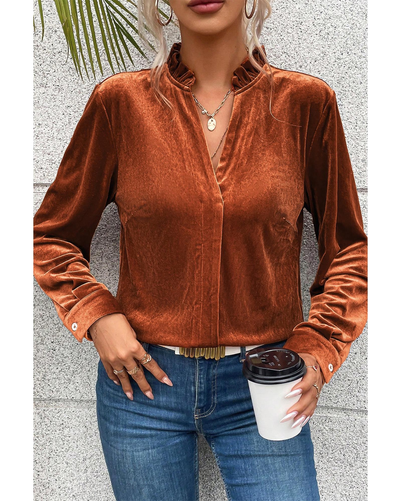 • Luxurious Gold Flame Frilled Collar Velvet Shirt