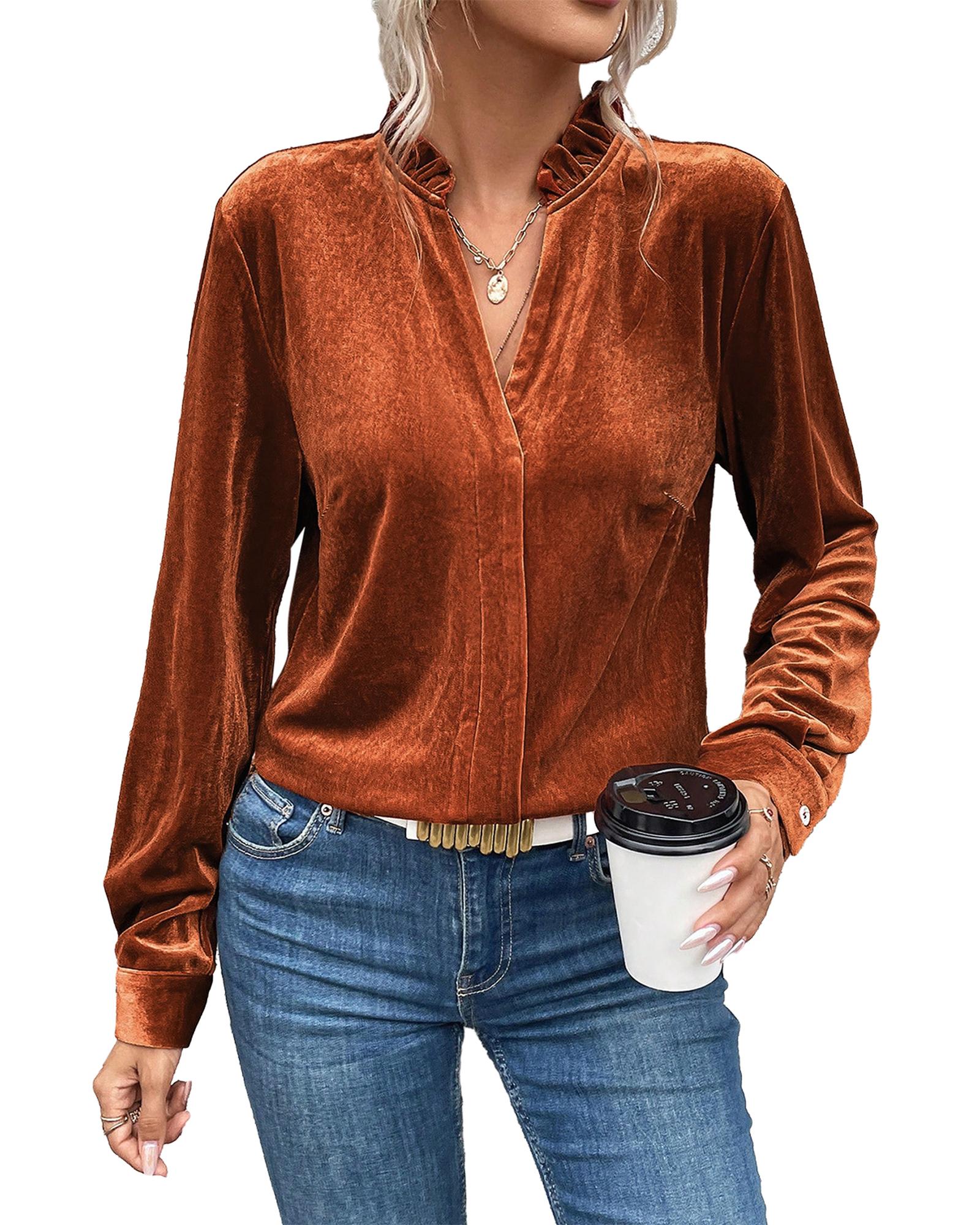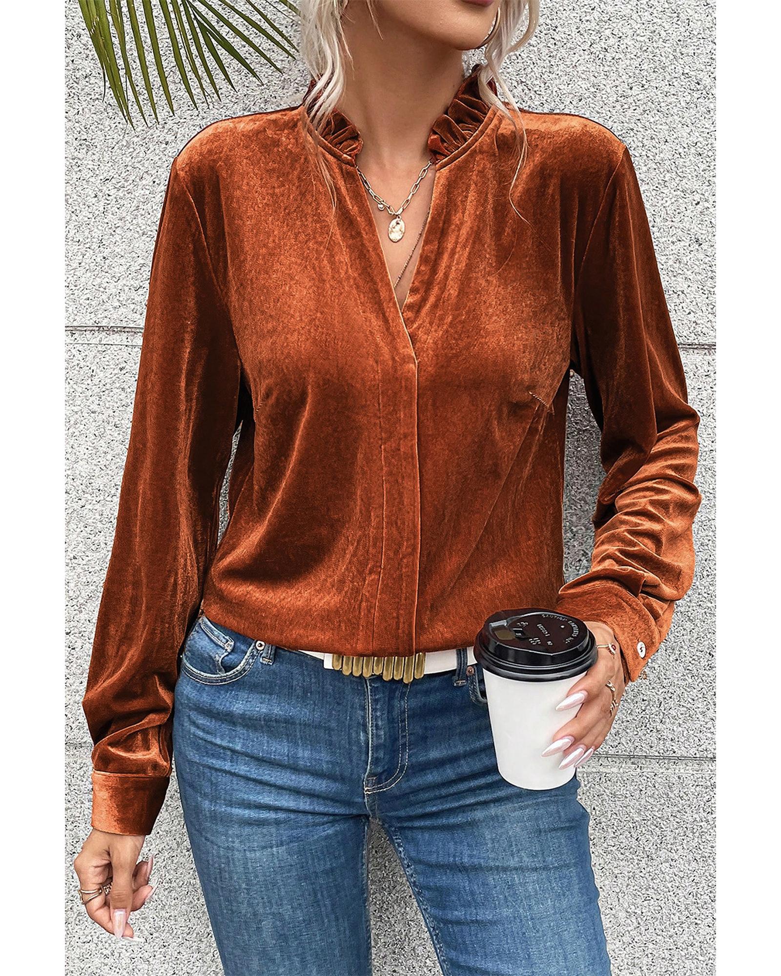 - Luxurious Gold Flame Frilled Collar Velvet Shirt