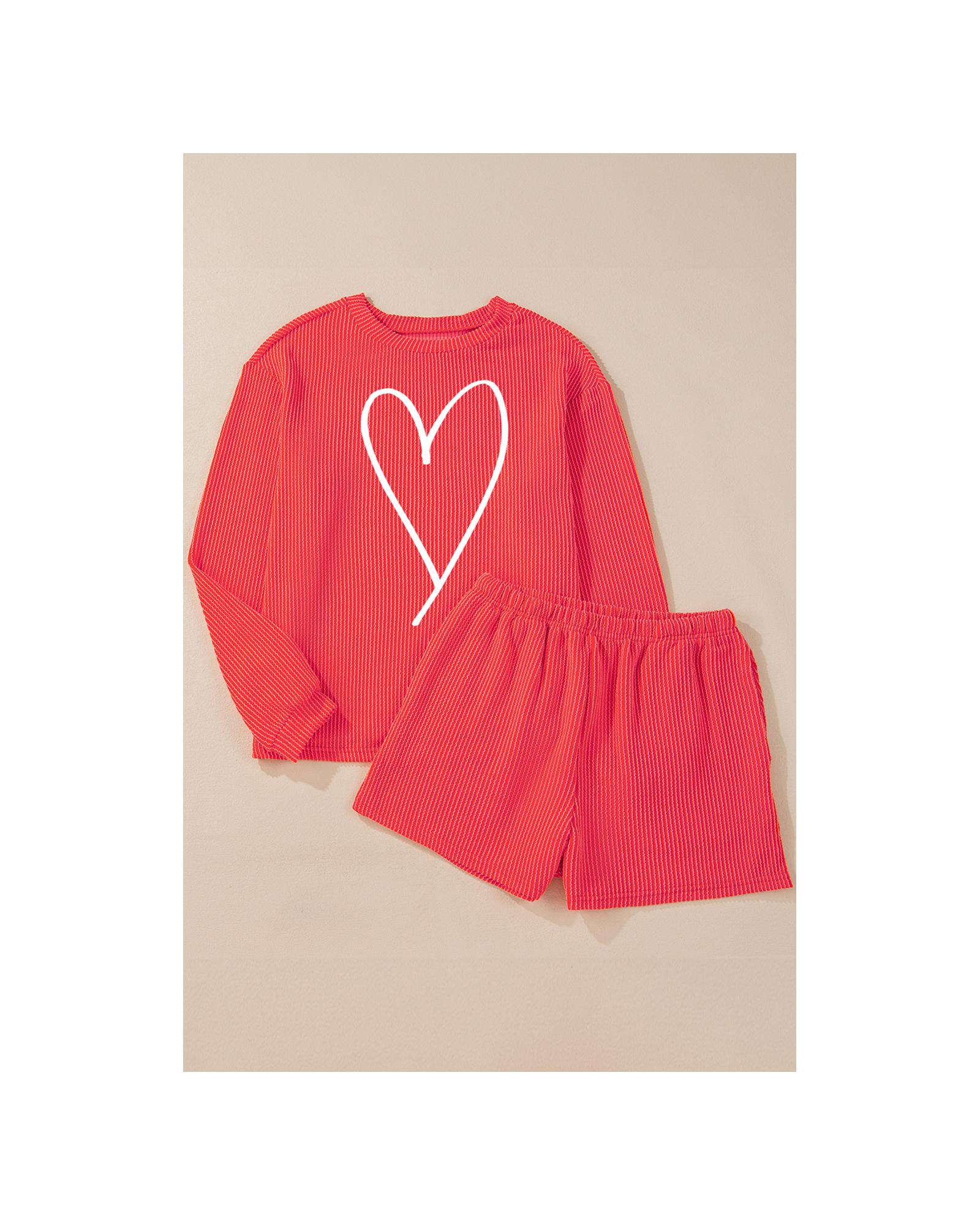 Gold Flame Heart Shape Graphic Corded Pullover and Shorts Outfit – L