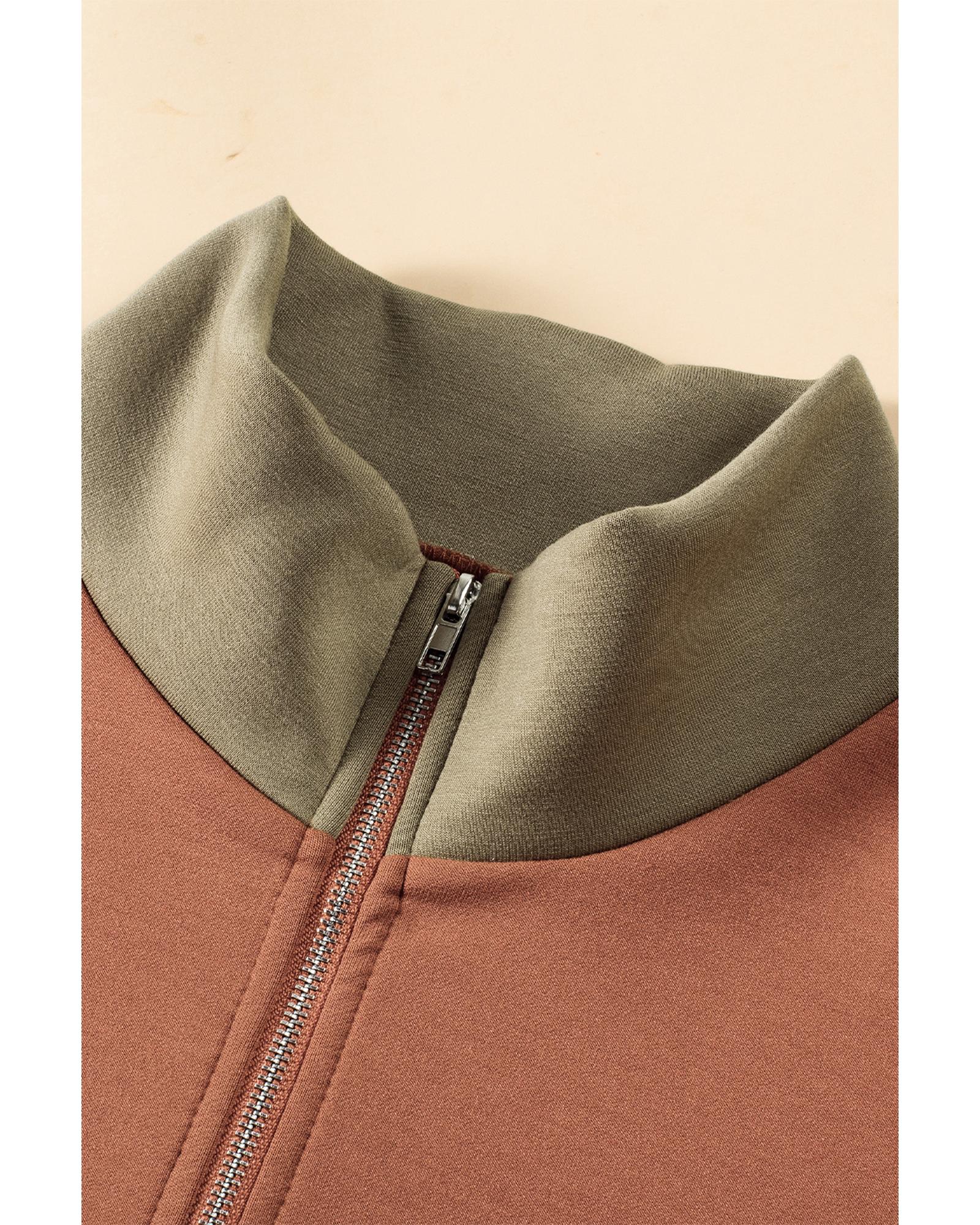 Gold Flame Plus Size Colorblock Exposed Seam Quarter Zip Sweatshirt – 3X