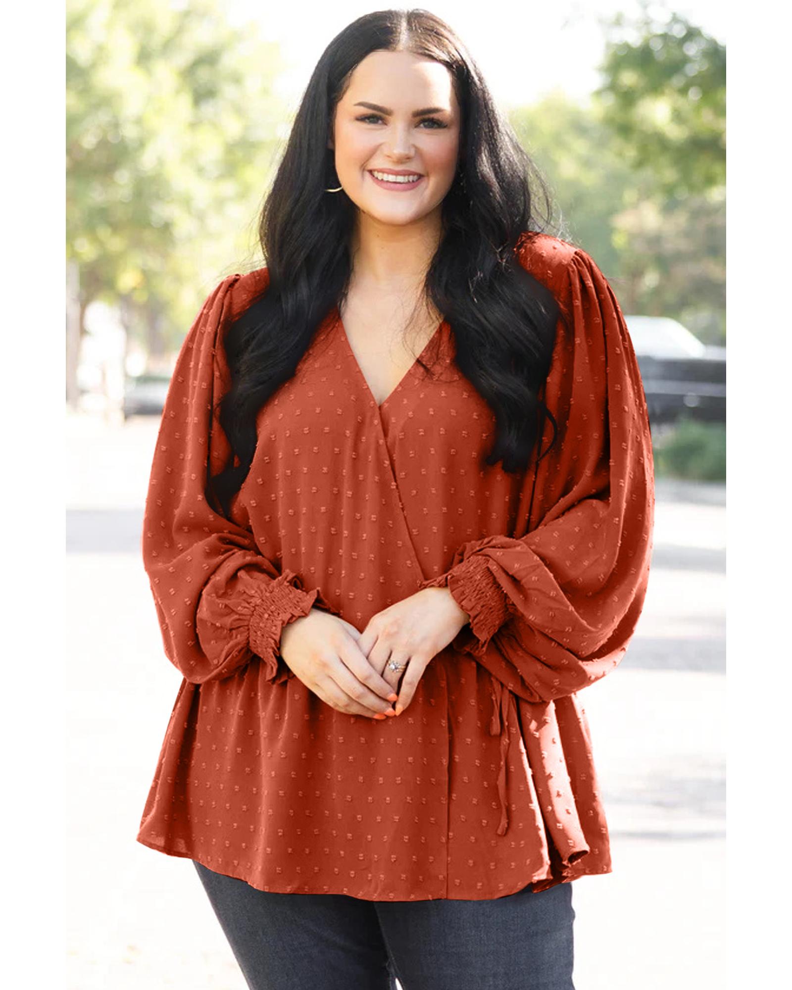 Gold Flame Plus Size Swiss Dot V Neck Wrap Tie Side Blouse – 2X