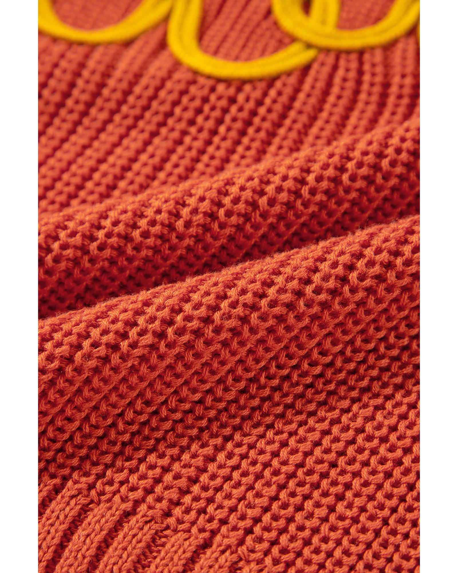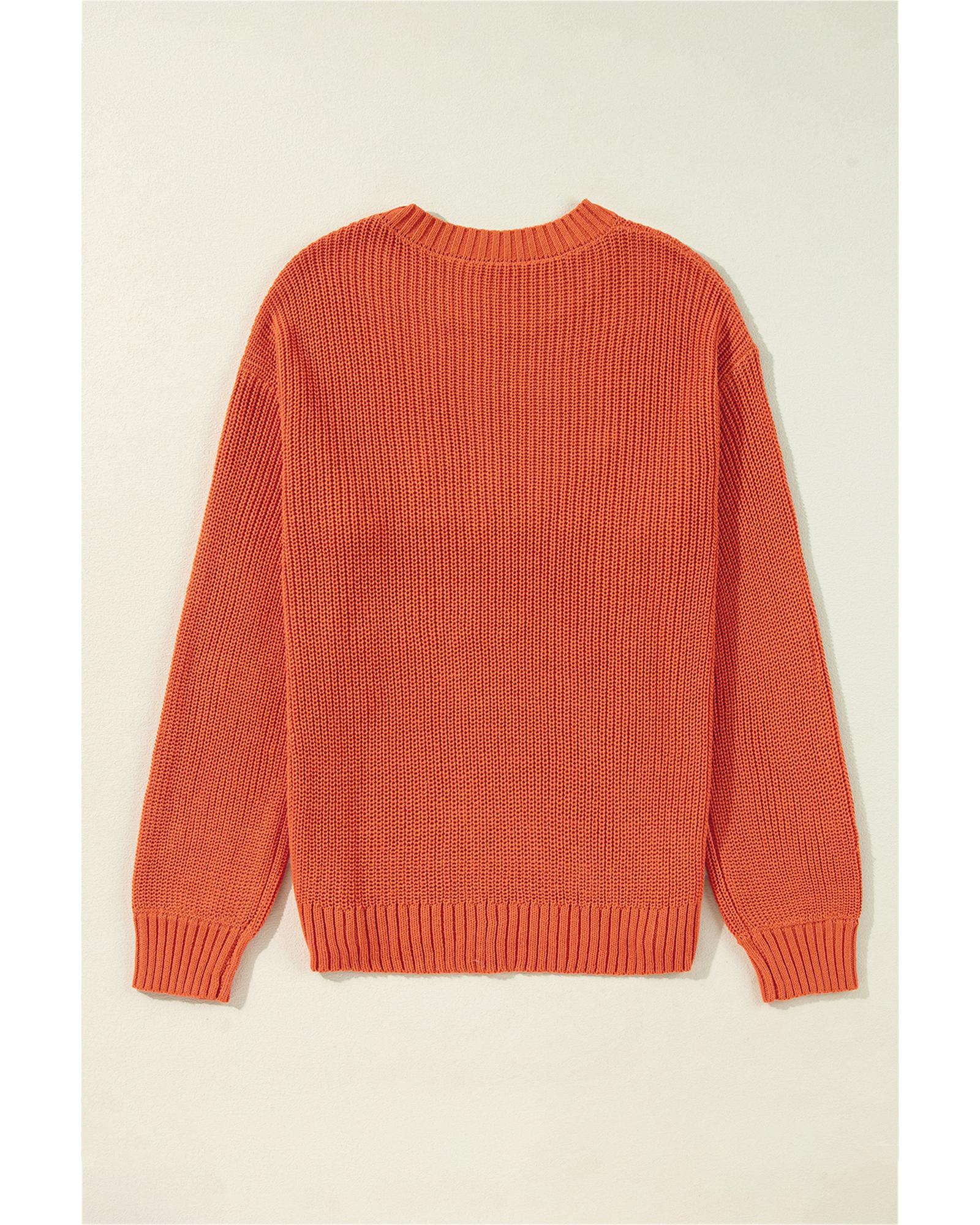 Gold Flame Thanks Giving Letter Graphic Crew Neck Sweater – S
