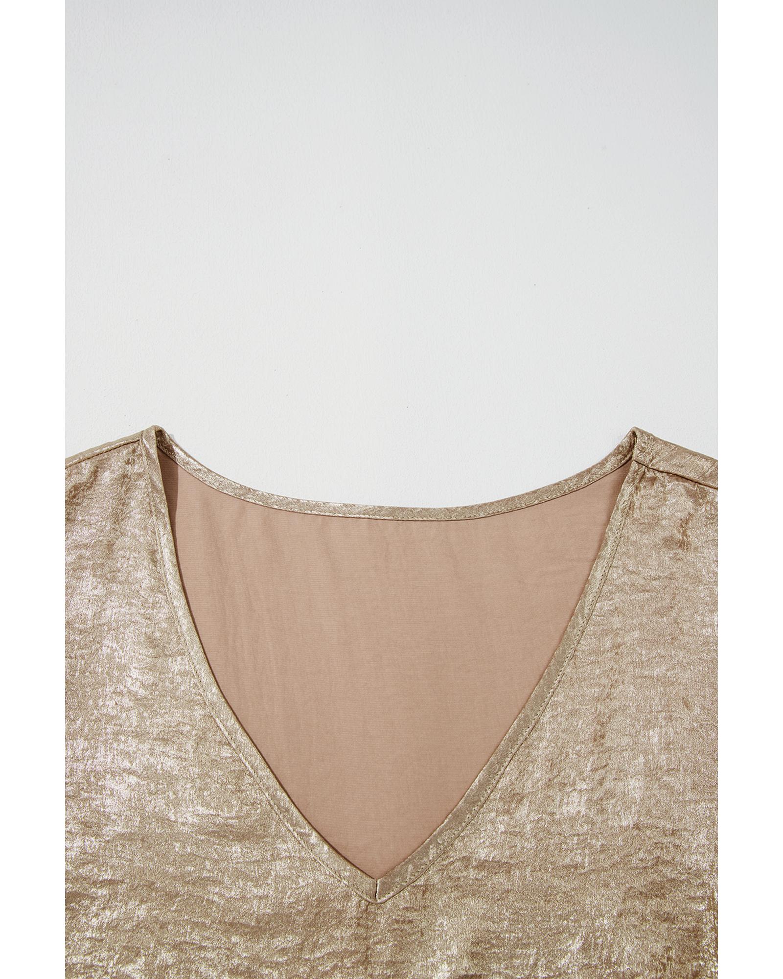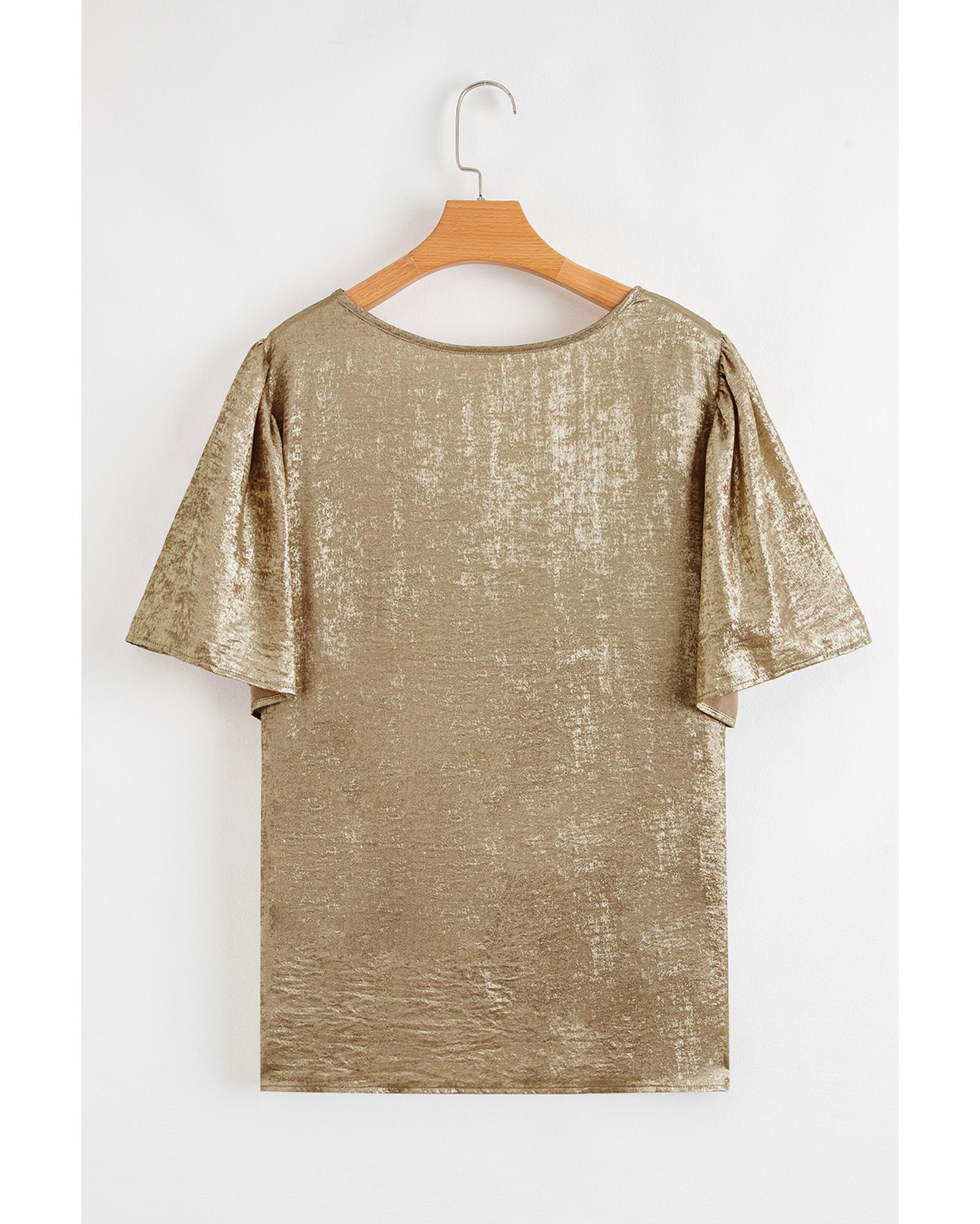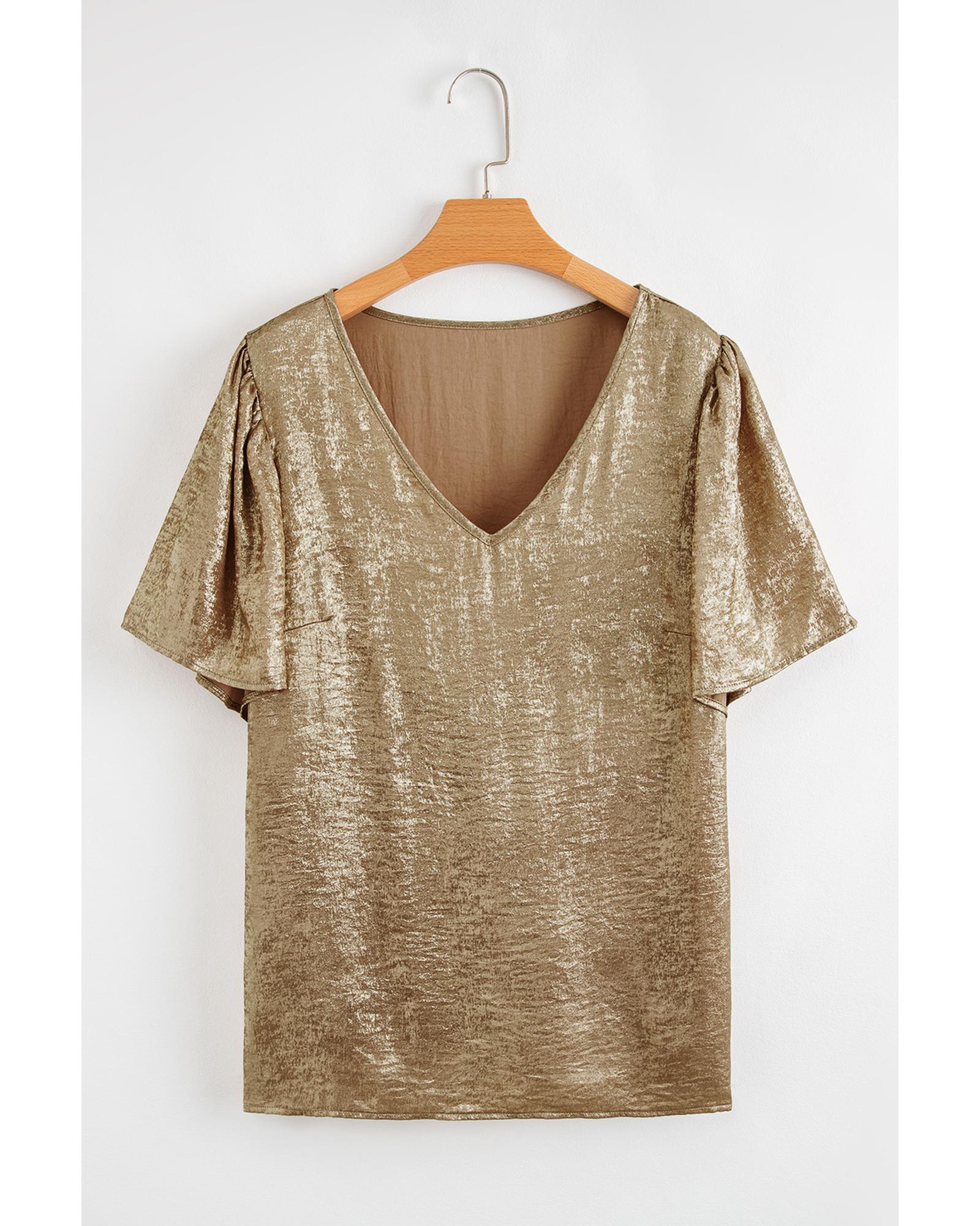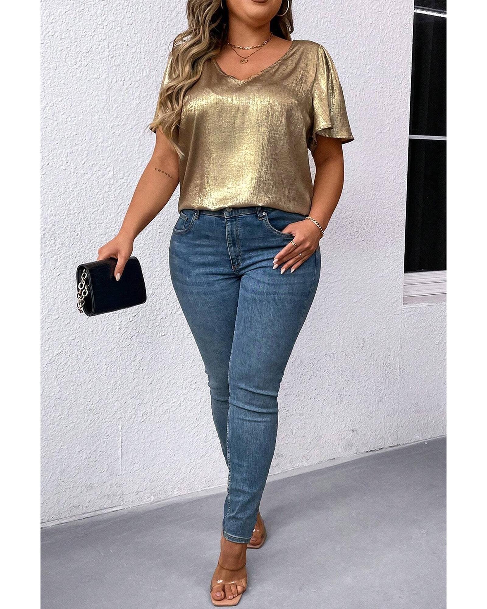 Gold Plus Size Metallic V Neck Short Sleeve Blouse – 1X