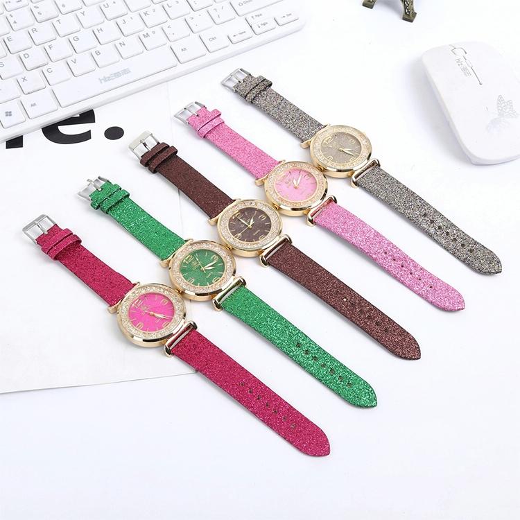 • 1 x Women Rhinestone Gold Powder Pu Leather Strap Quartz Watch
