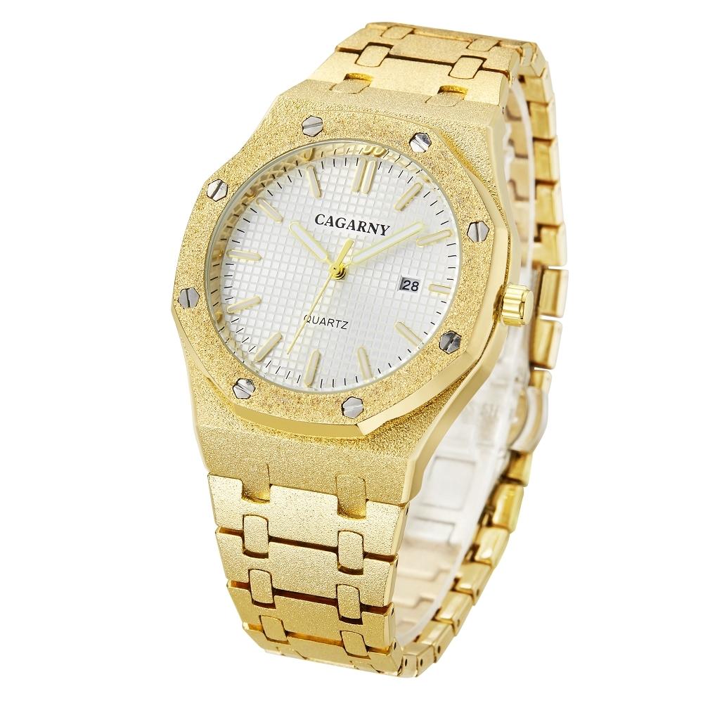 • 1 x 6885 Octagonal Dial Quartz Dual Movement Men Stainless Steel Strap Watch Gold Shell Black Dial