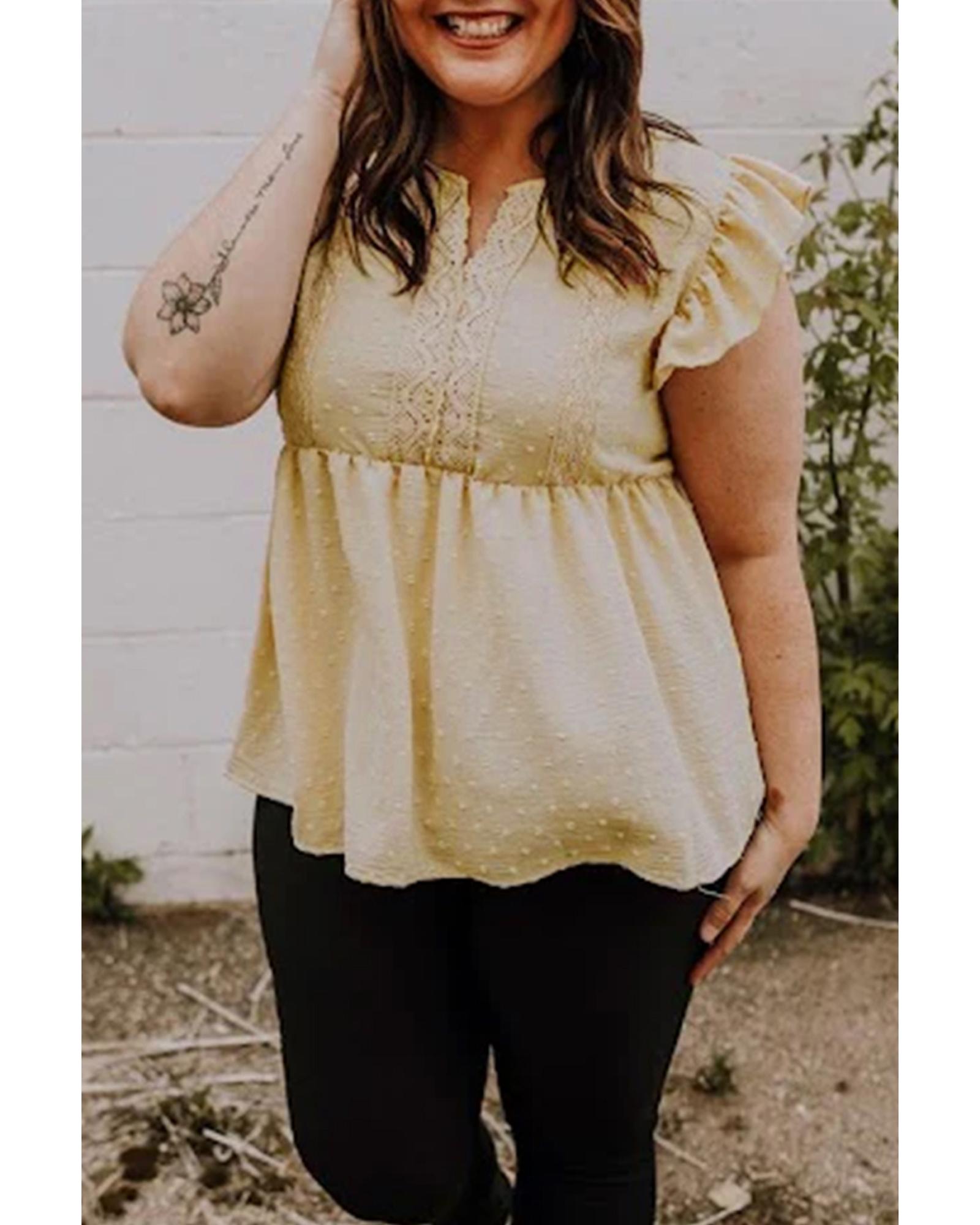 Golden Fleece Plus Size Swiss Dot Lace Trim Split Neck Babydoll Top – 2X