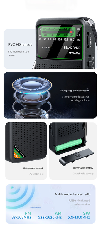 The JOC TG-77 is a versatile and user-friendly multi-band rechargeable radio designed specifically for seniors. It features automatic channel searching, high-volume output, and a long standby time, making it an ideal companion for daily use or outdoor activities. The device supports FM, AM, and SW bands, ensuring access to a wide range of channels.