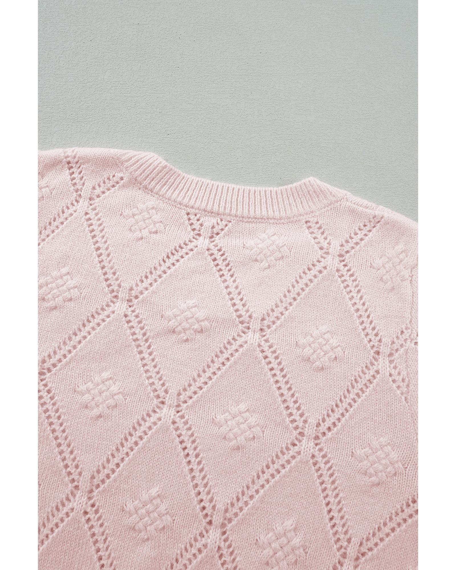 Gossamer Pink Openwork Plaid Puff Sleeve Cropped Sweater - L Original price was: $70.99.Current price is: $37.99.