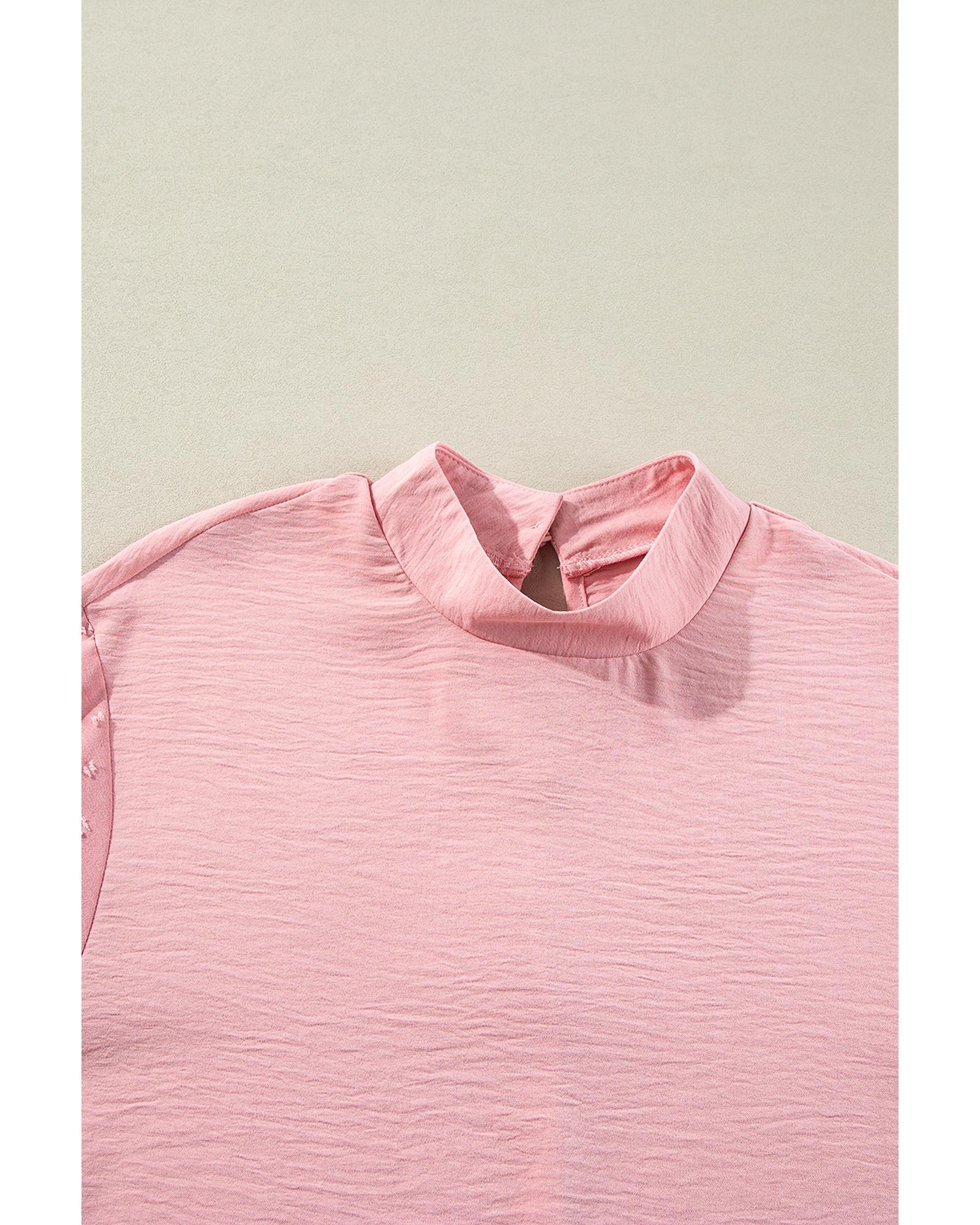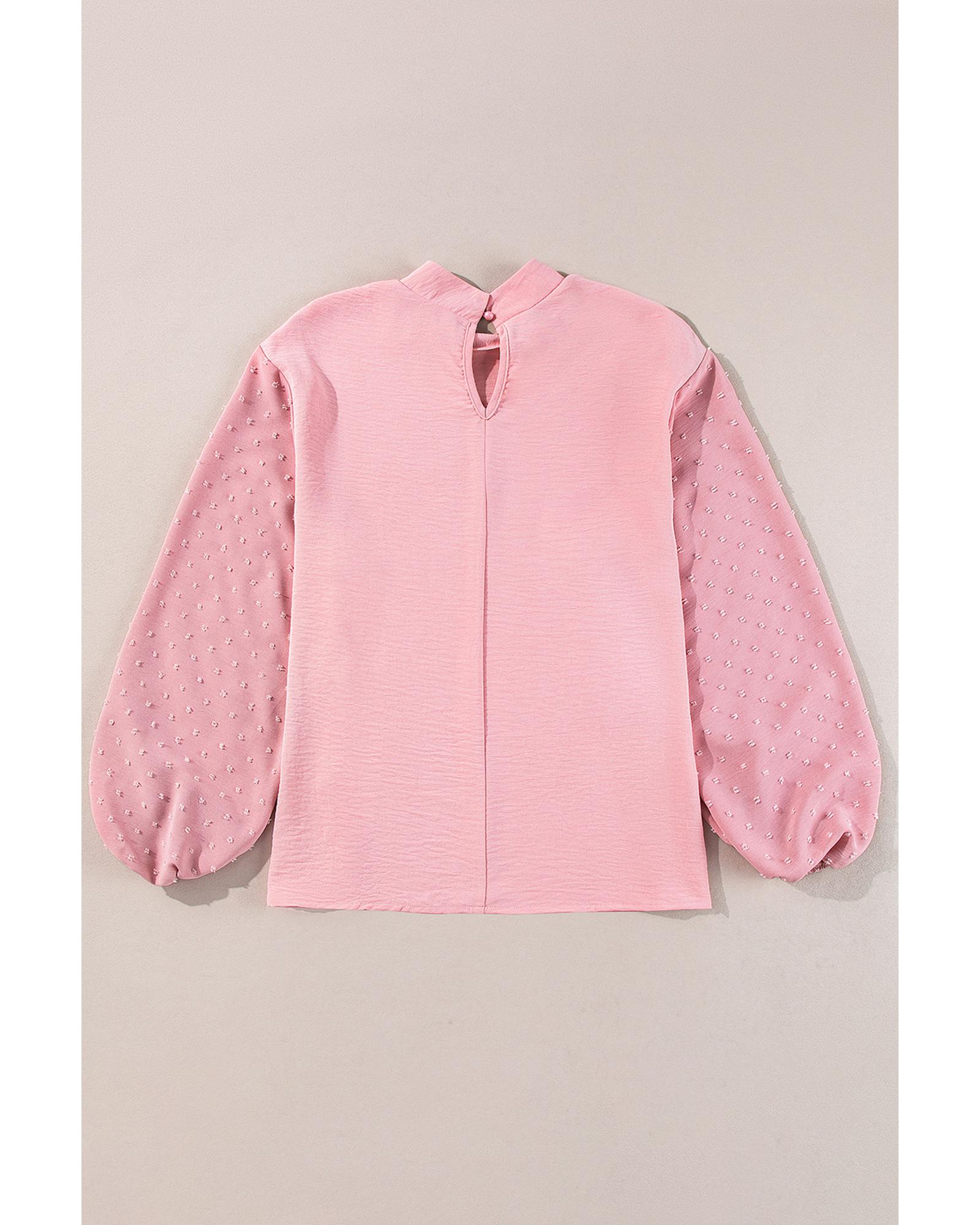 Gossamer Pink Swiss Dot Balloon Sleeve Loose Blouse – L
