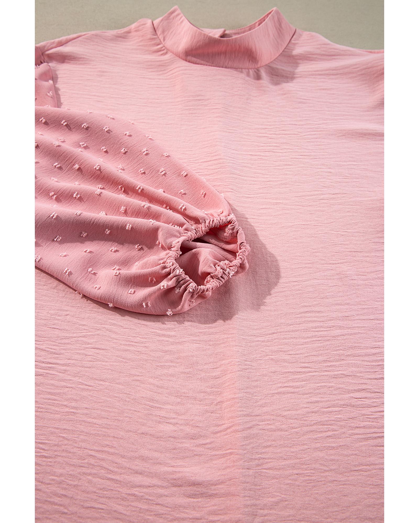 Gossamer Pink Swiss Dot Balloon Sleeve Loose Blouse – M