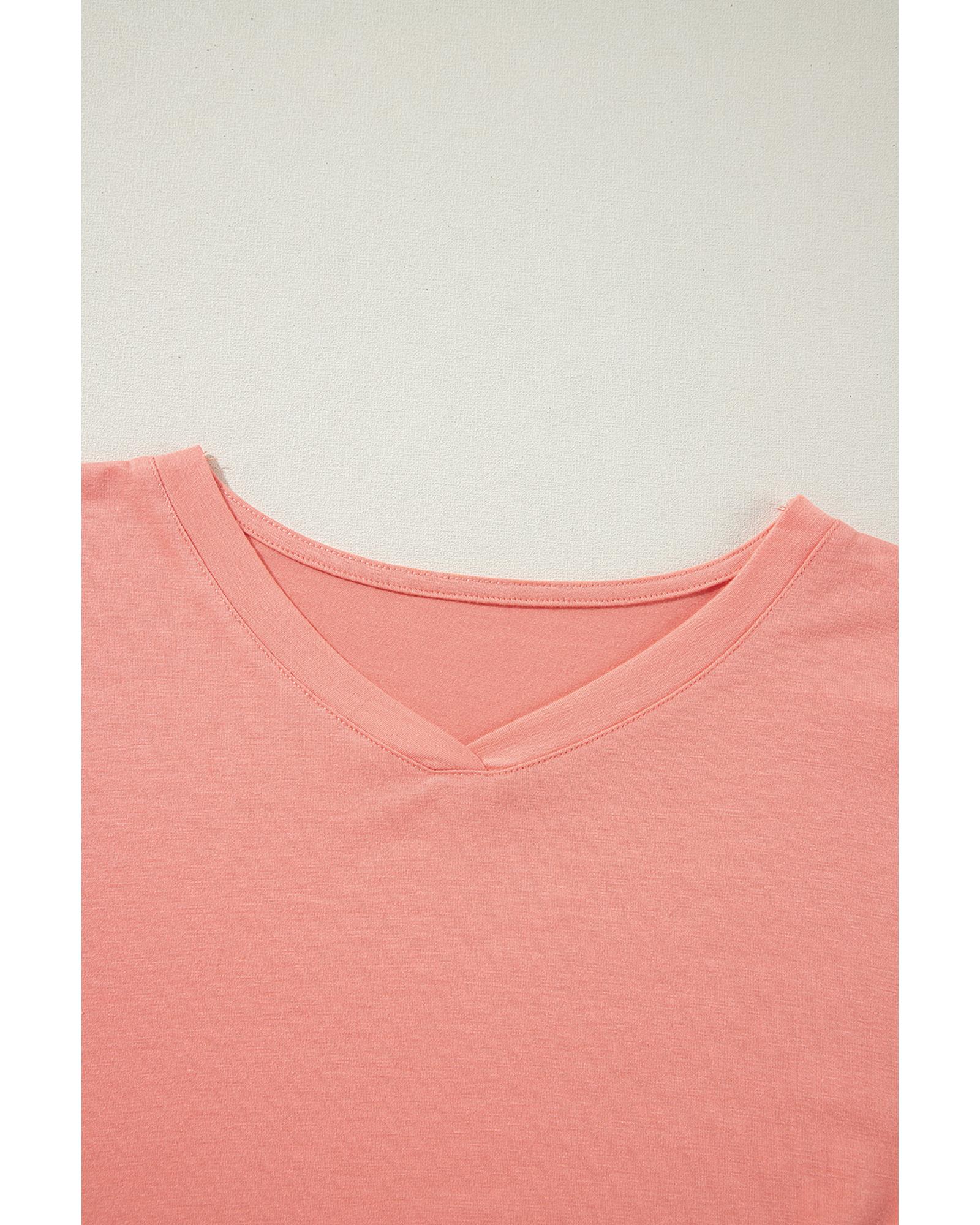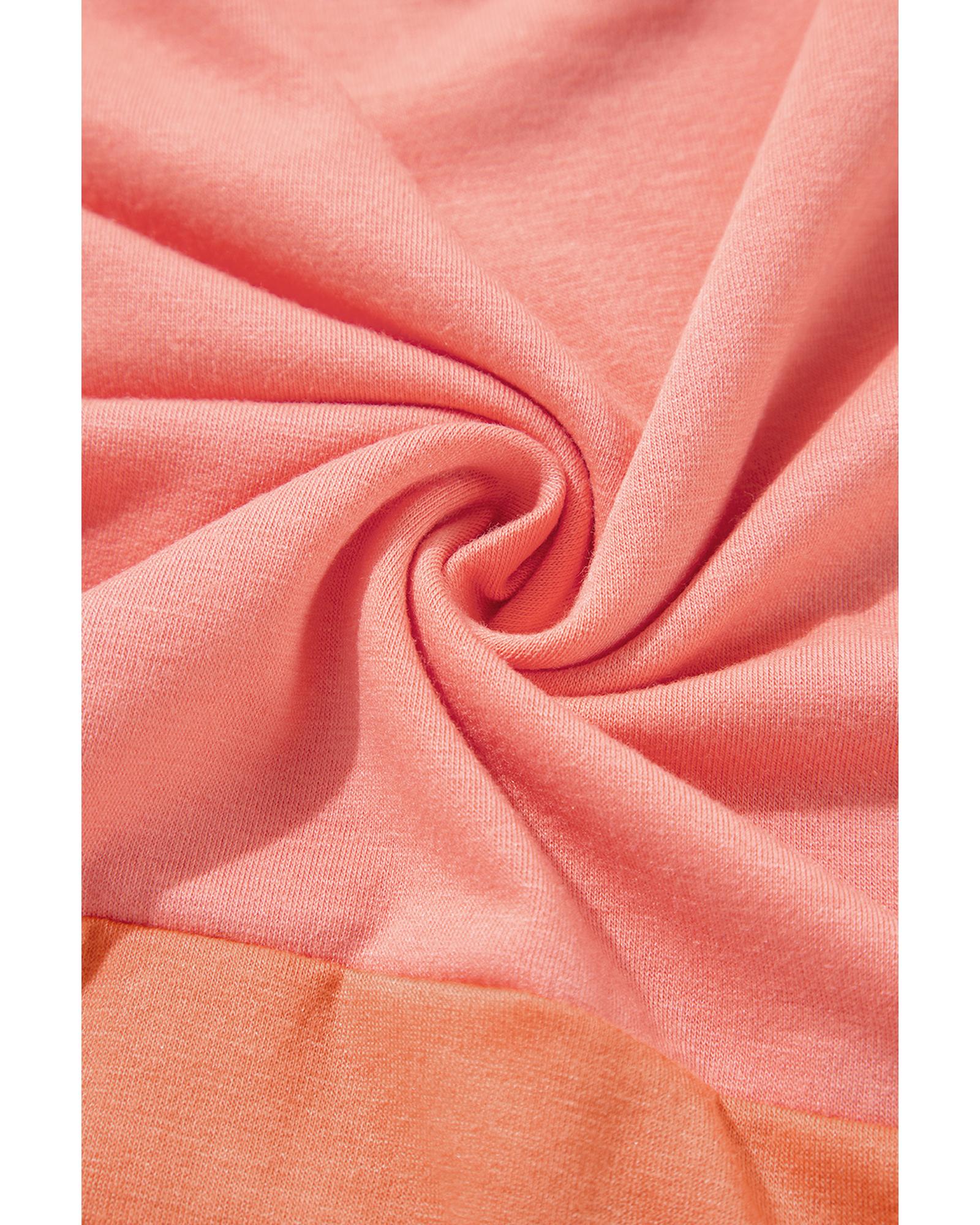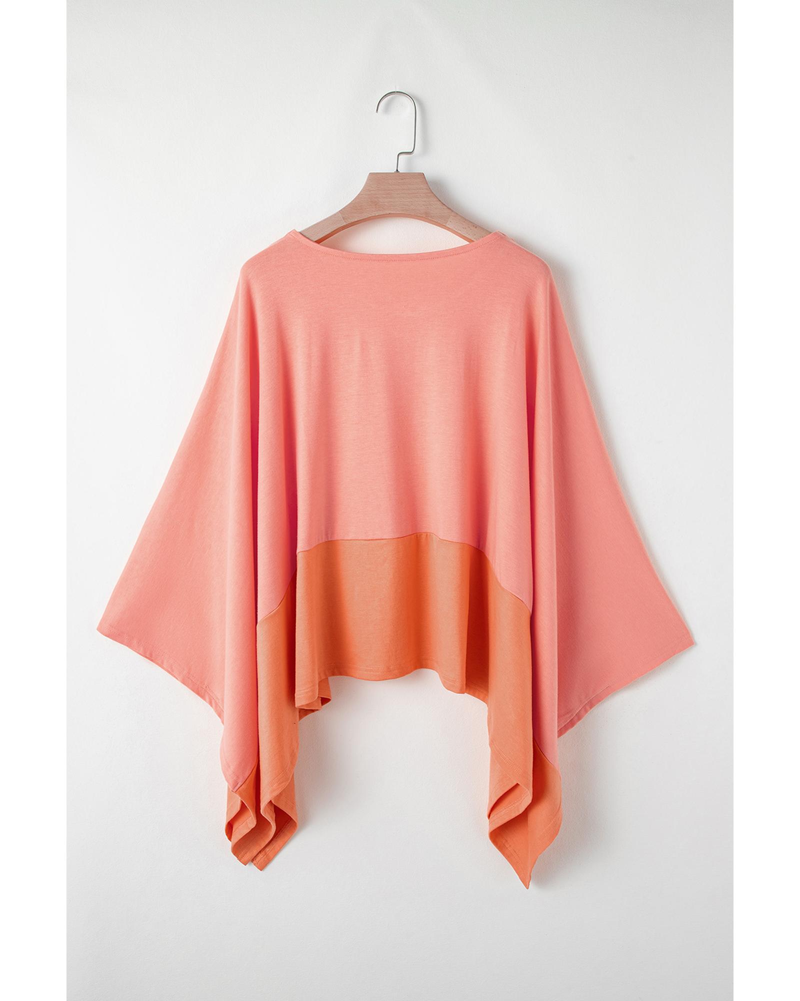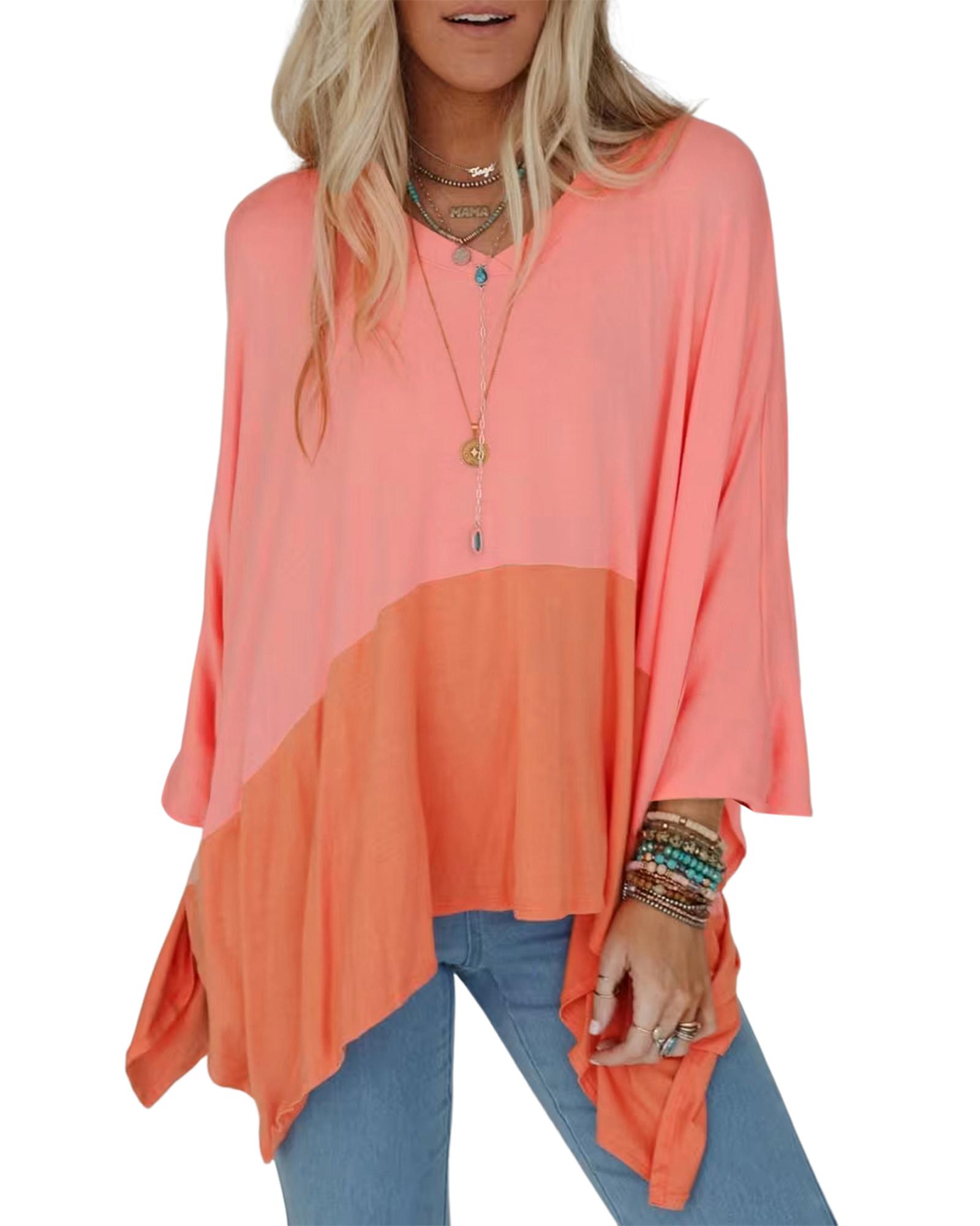 - Grapefruit Orange Contrast Color Patchwork Oversized Side Split Top