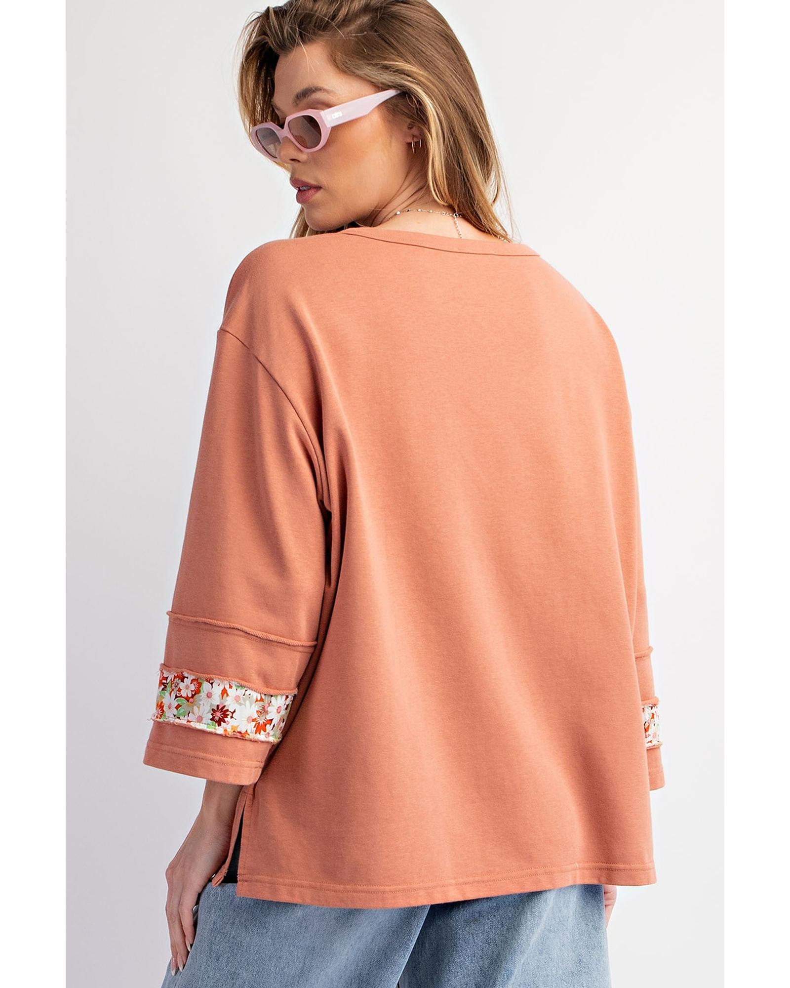 Grapefruit Orange Flower Patch Graphic Exposed Seam Wide Sleeve Top – L