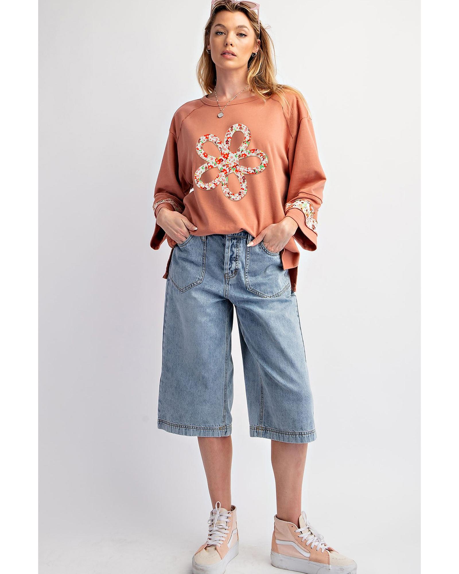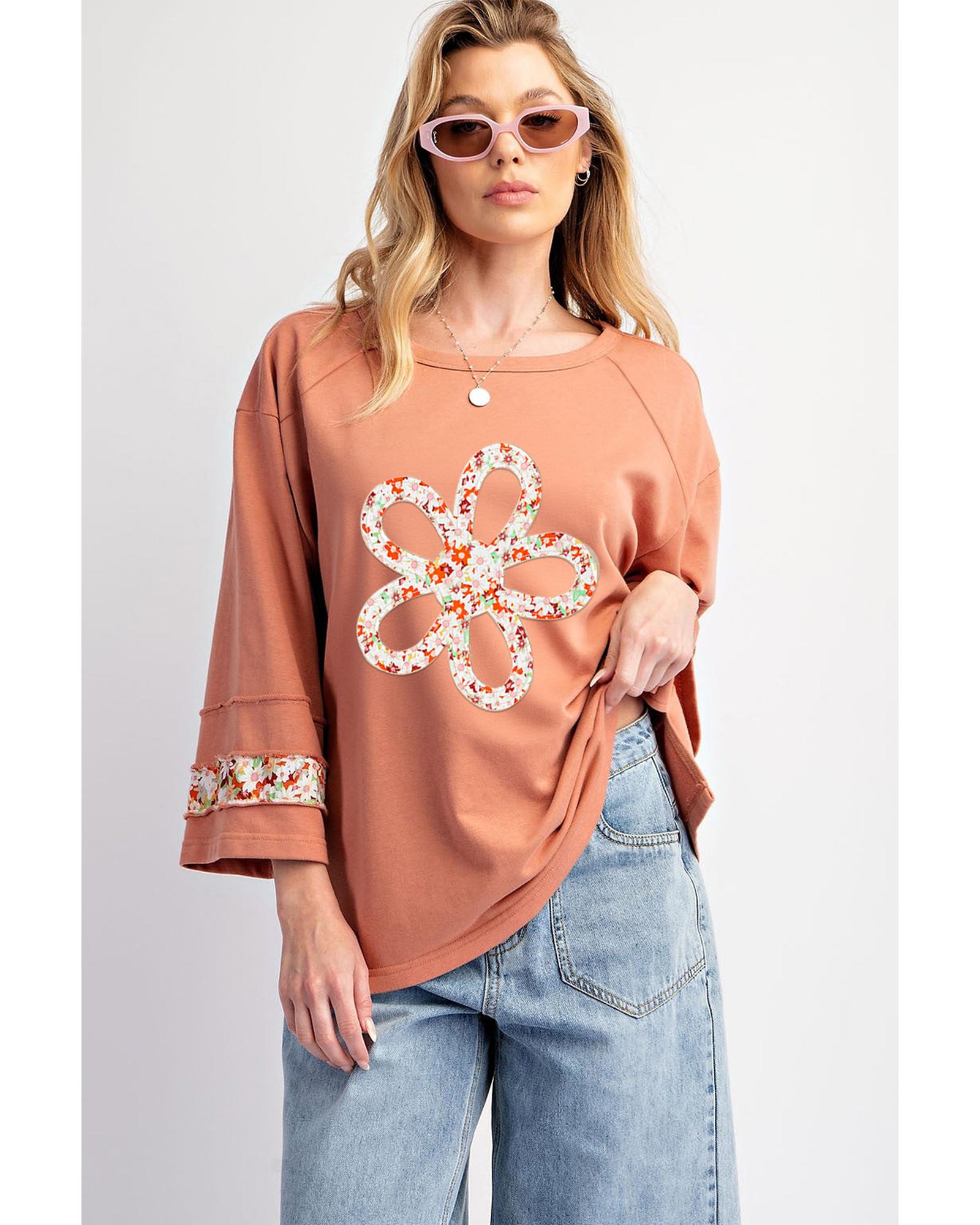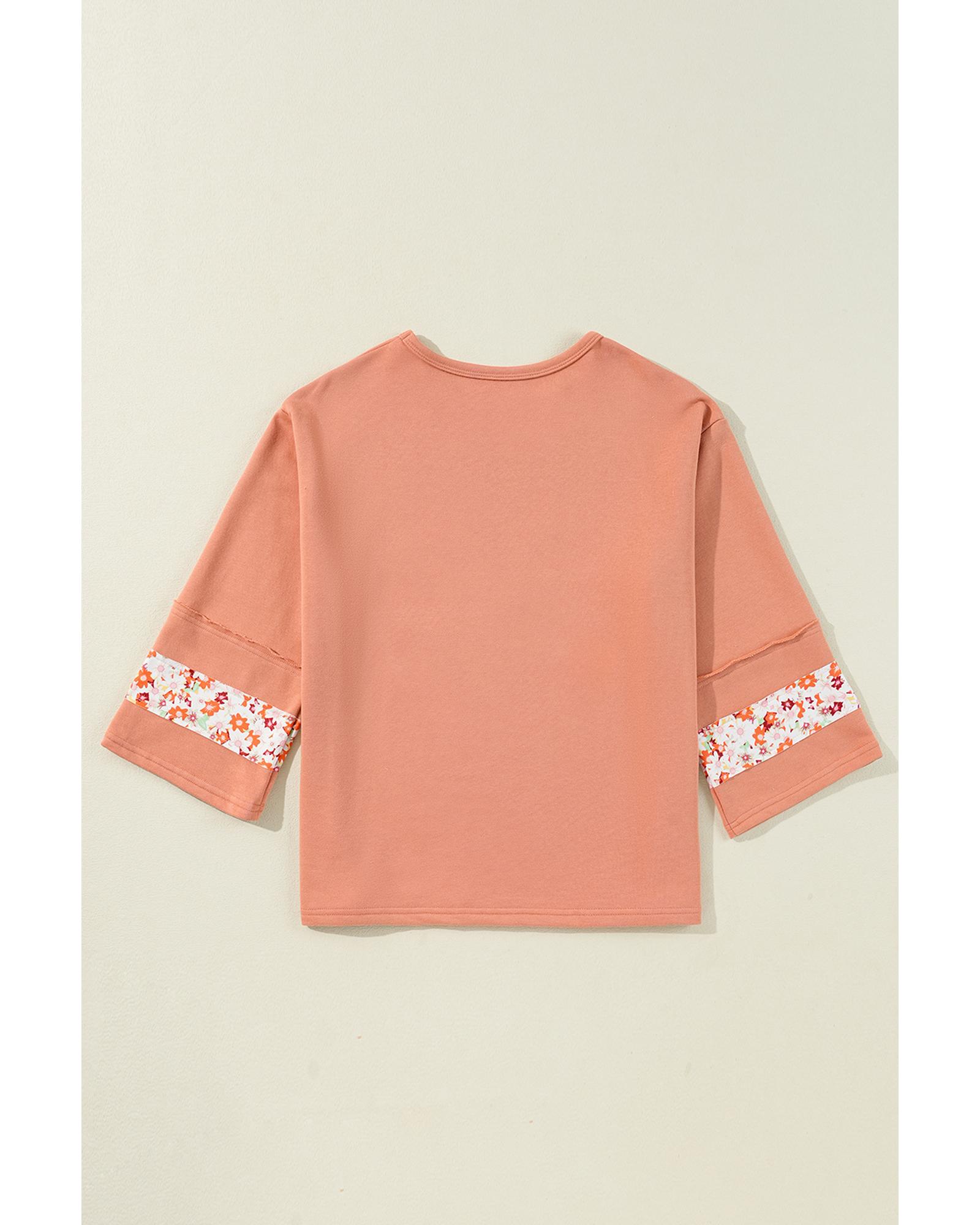Grapefruit Orange Flower Patch Graphic Exposed Seam Wide Sleeve Top – M