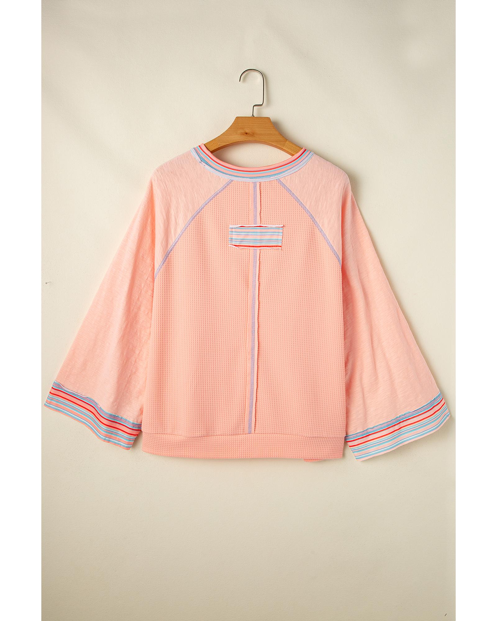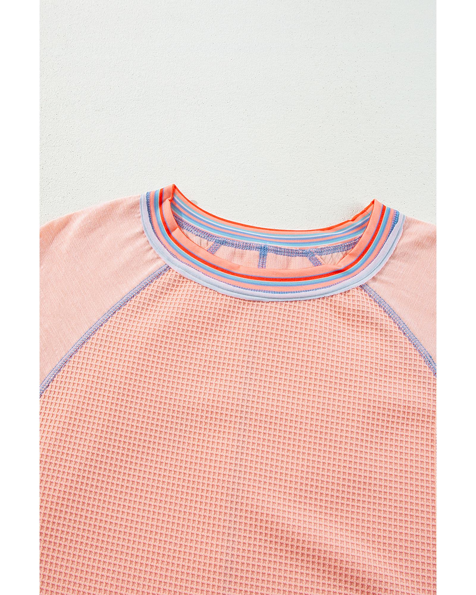 Grapefruit Orange Waffle Knit Wide Bracelet Sleeve Patchwork Raglan Top – L