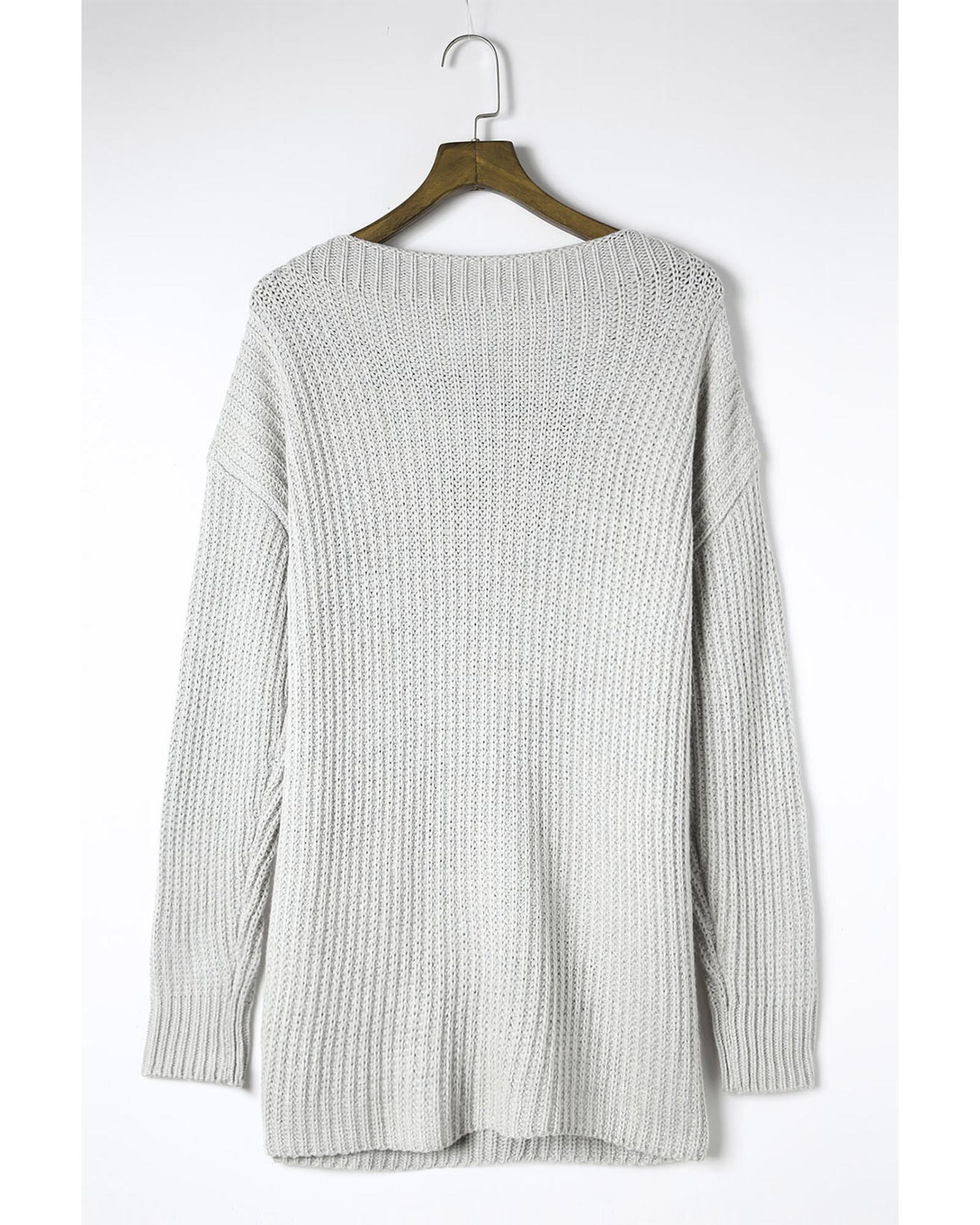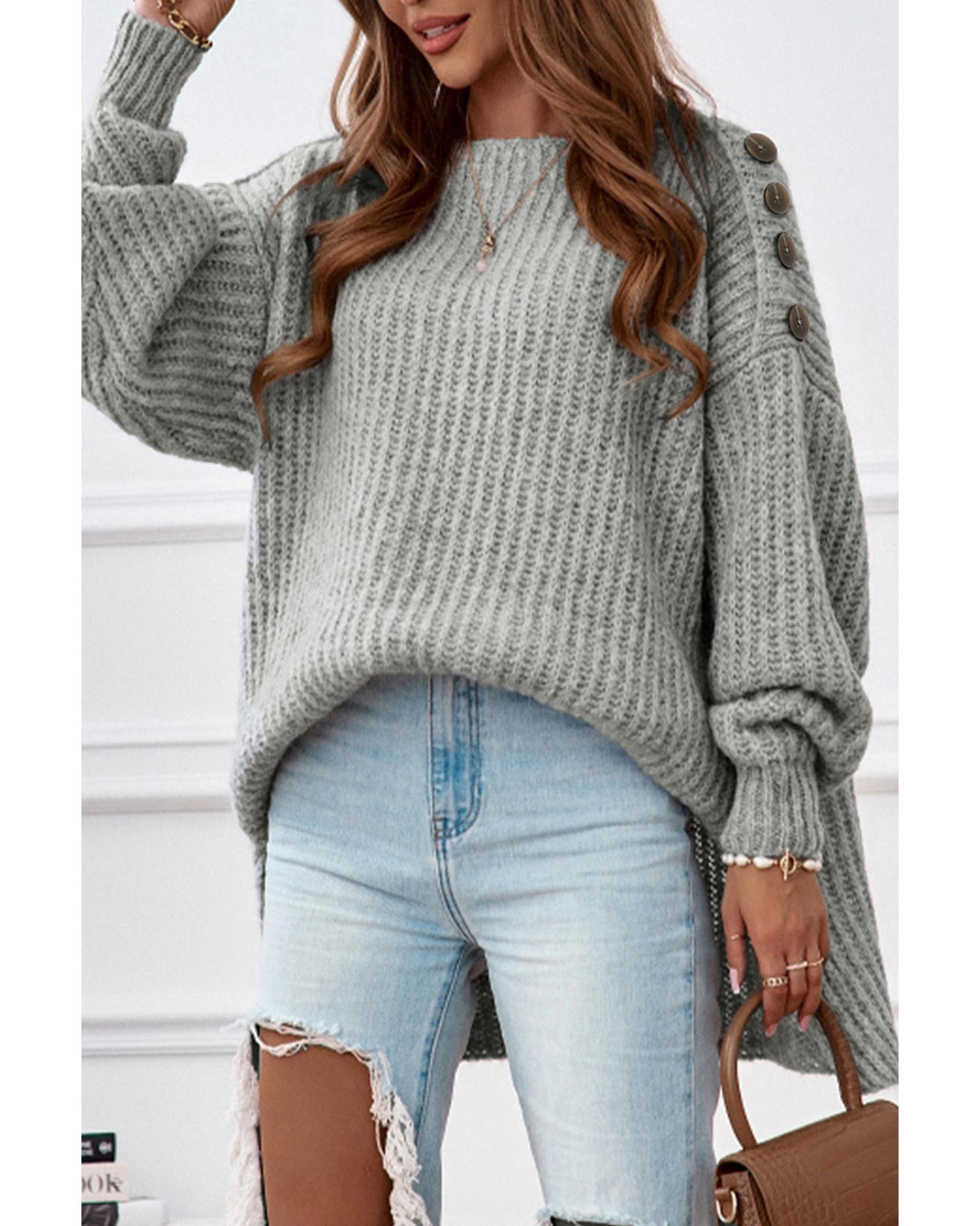 Gray Buttoned Drop Shoulder Oversized Sweater – XL