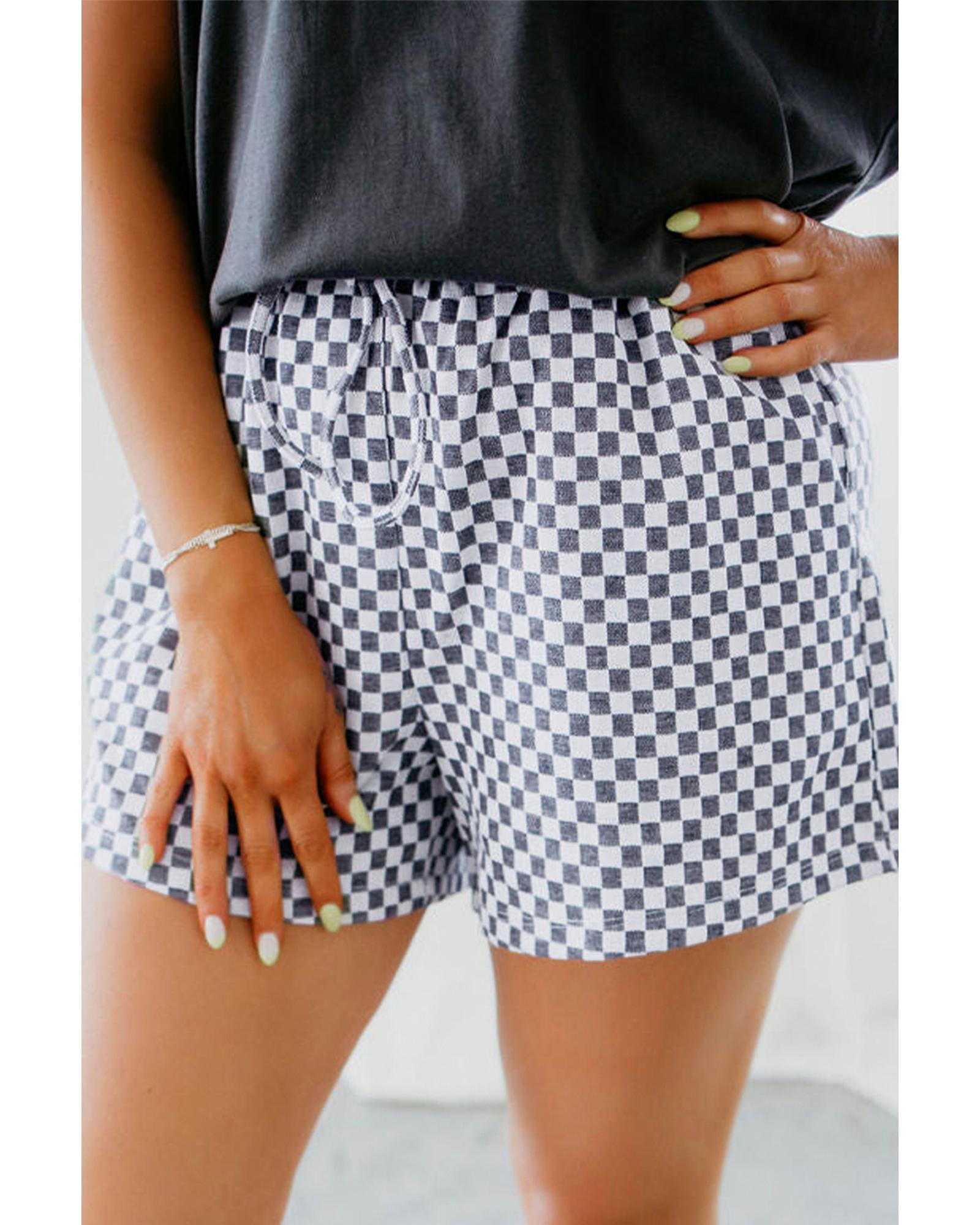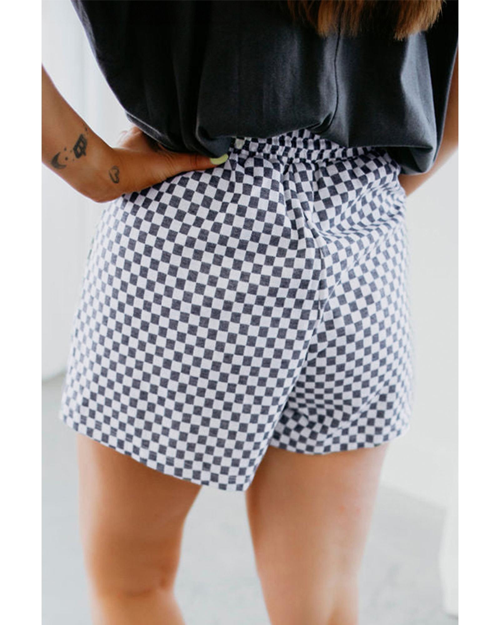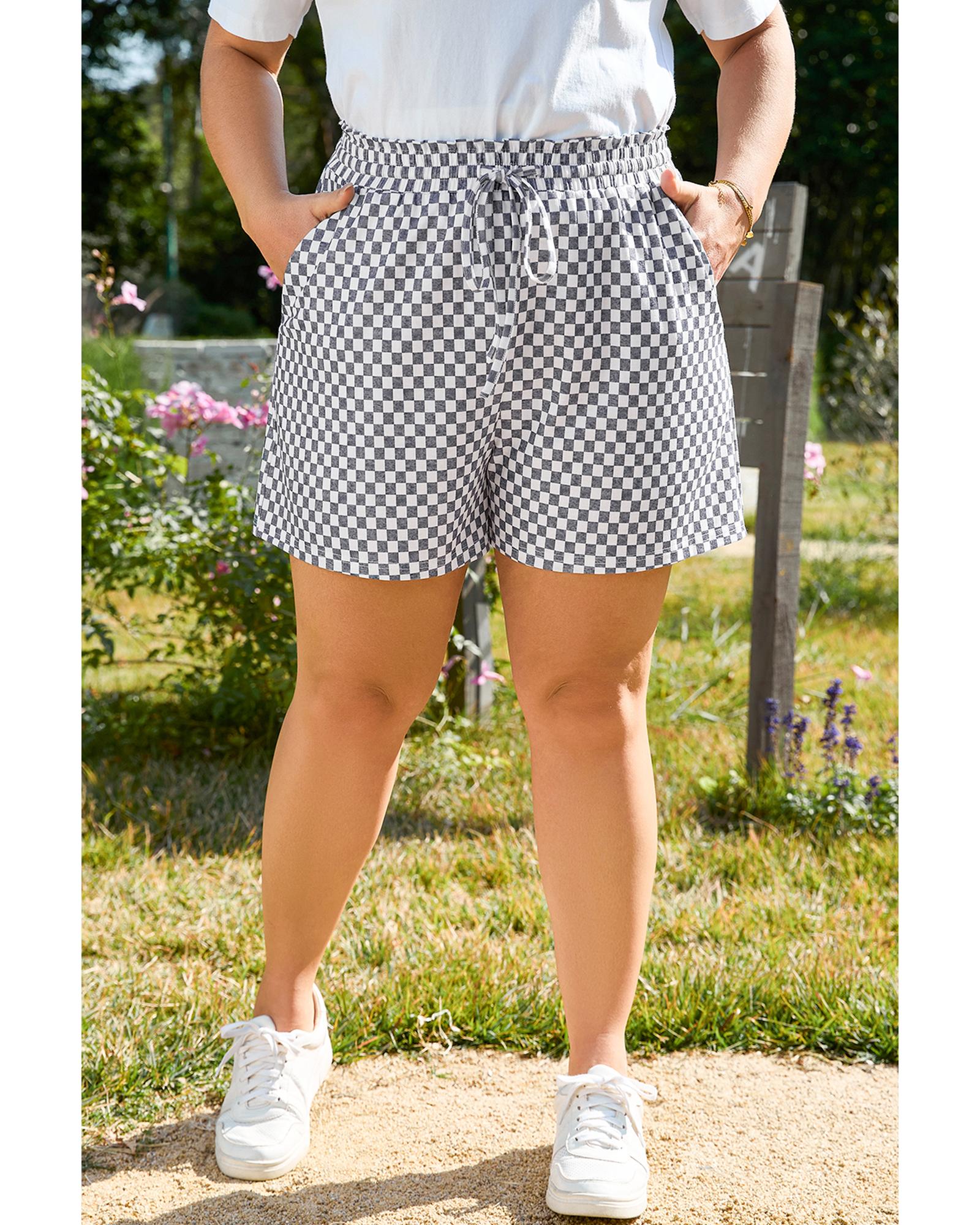 Gray Checkerboard Lace-Up High Waist Plus Size Casual Shorts – 1X