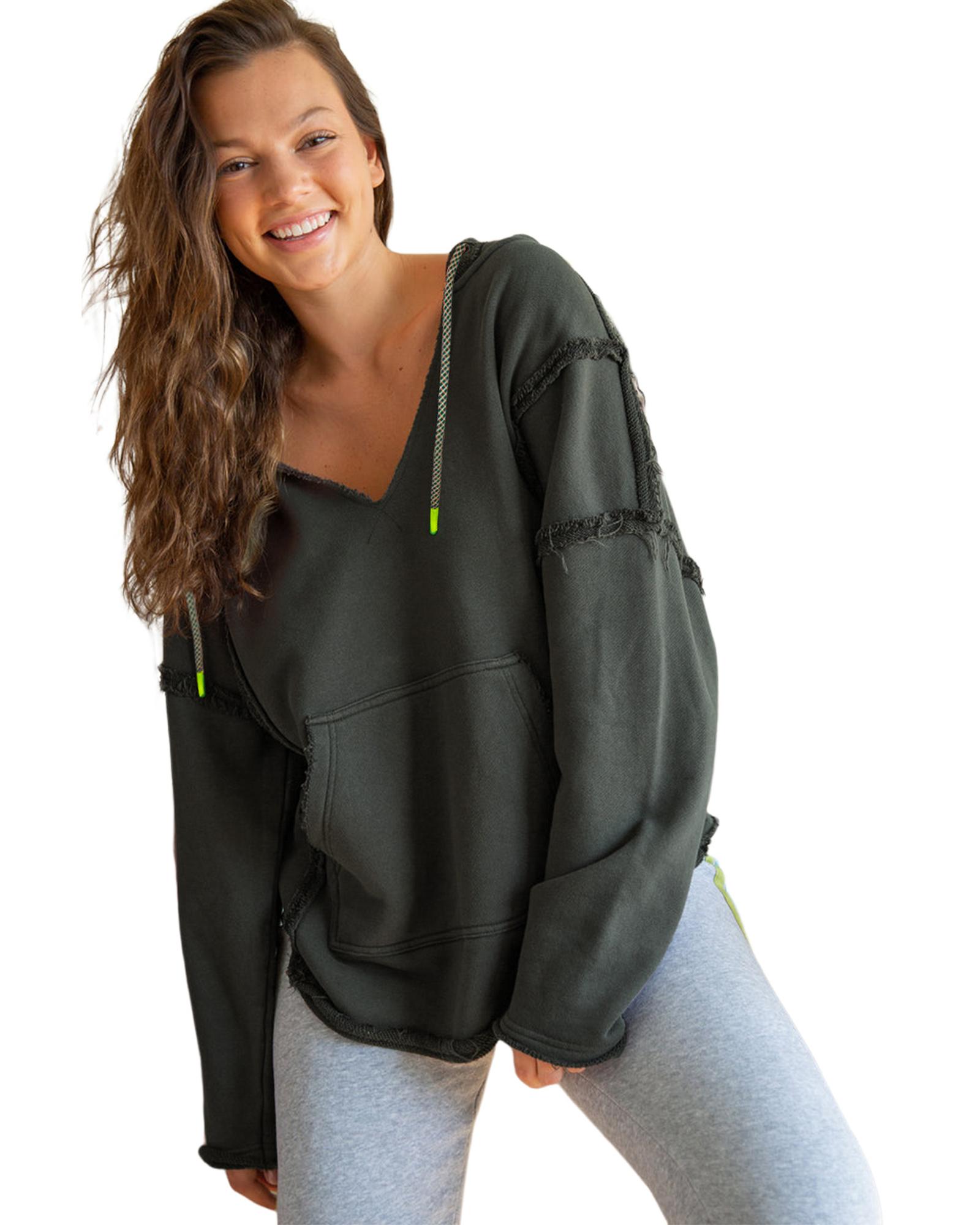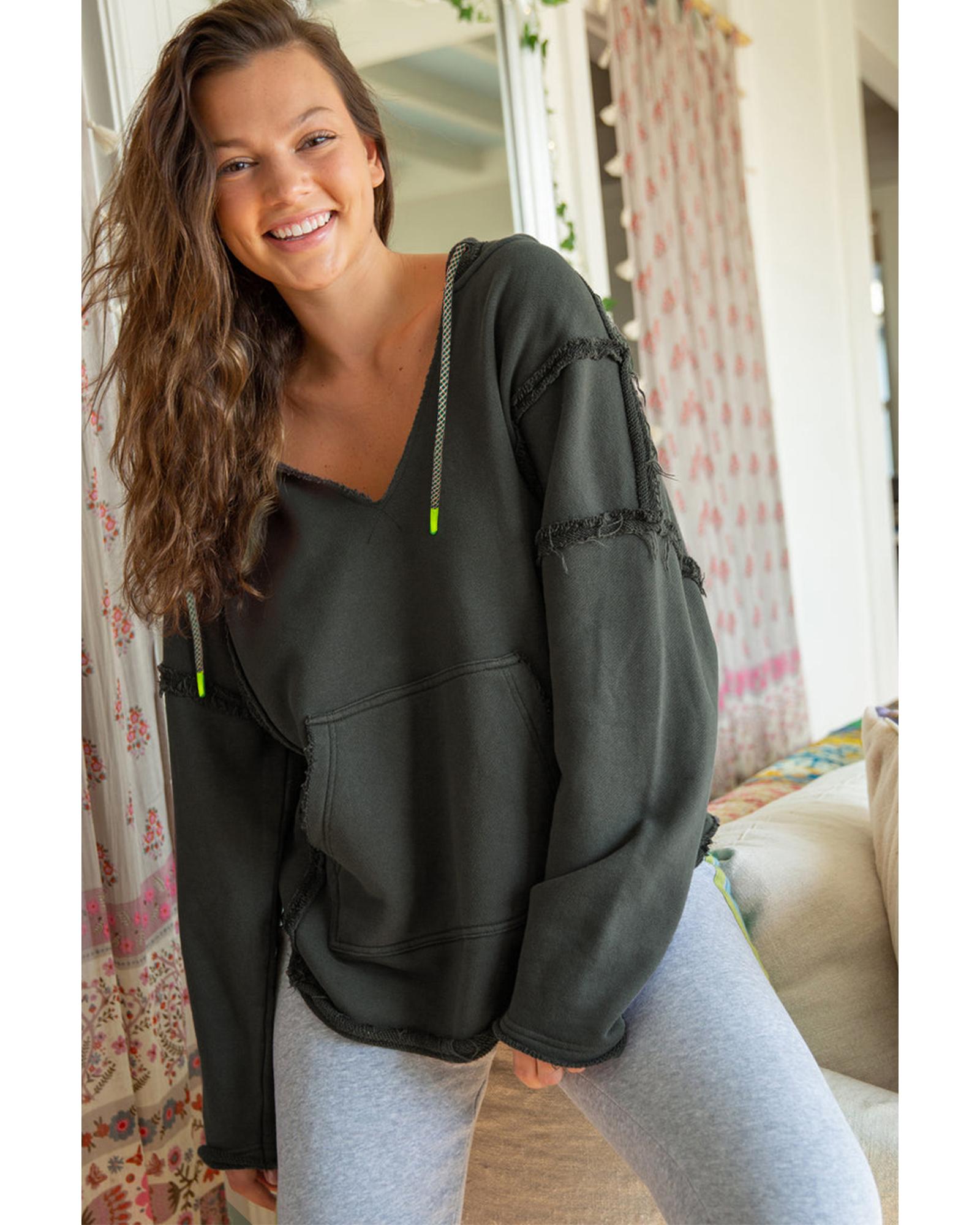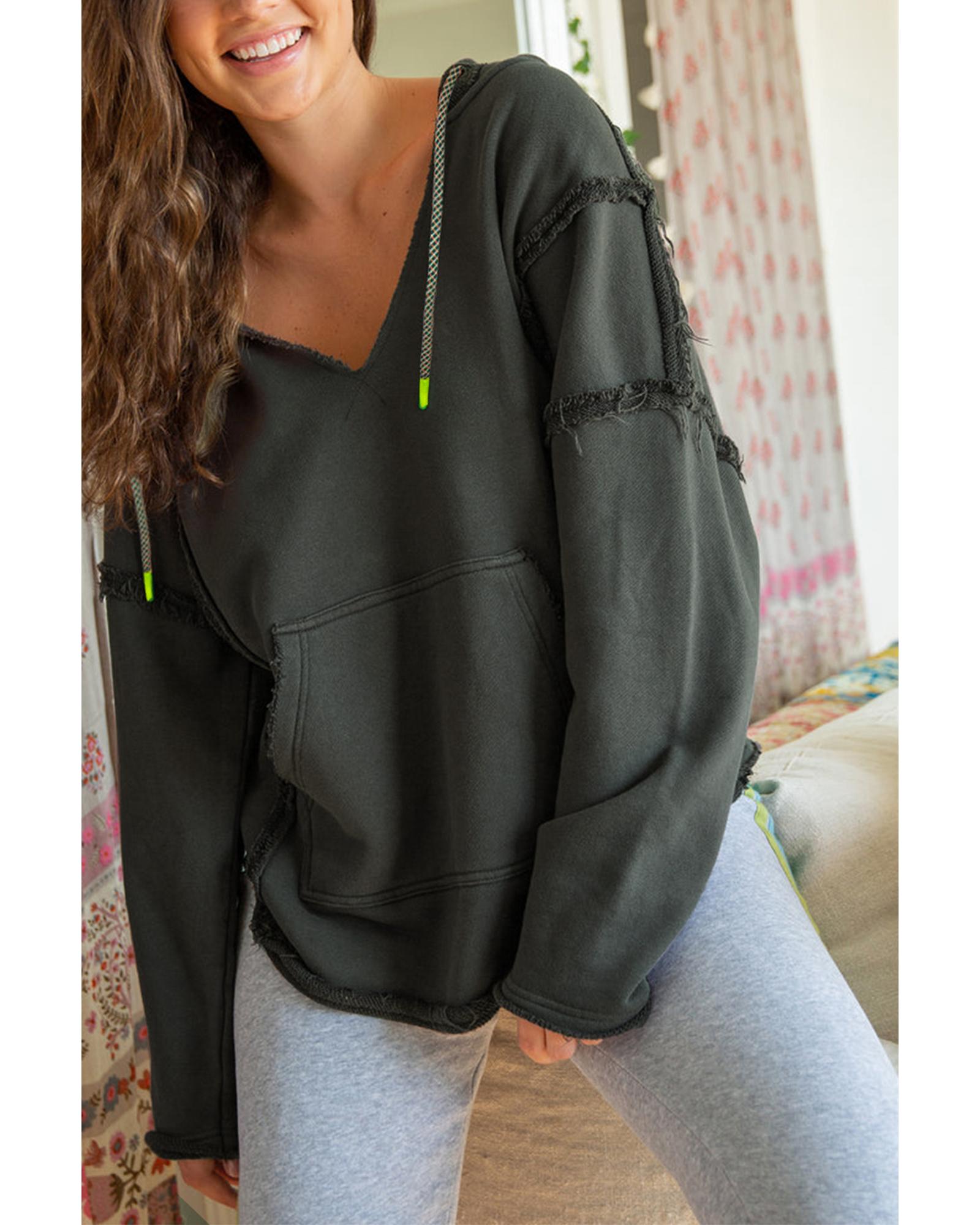 Gray Exposed Seam Raw Edge Hoodie with Pockets – S