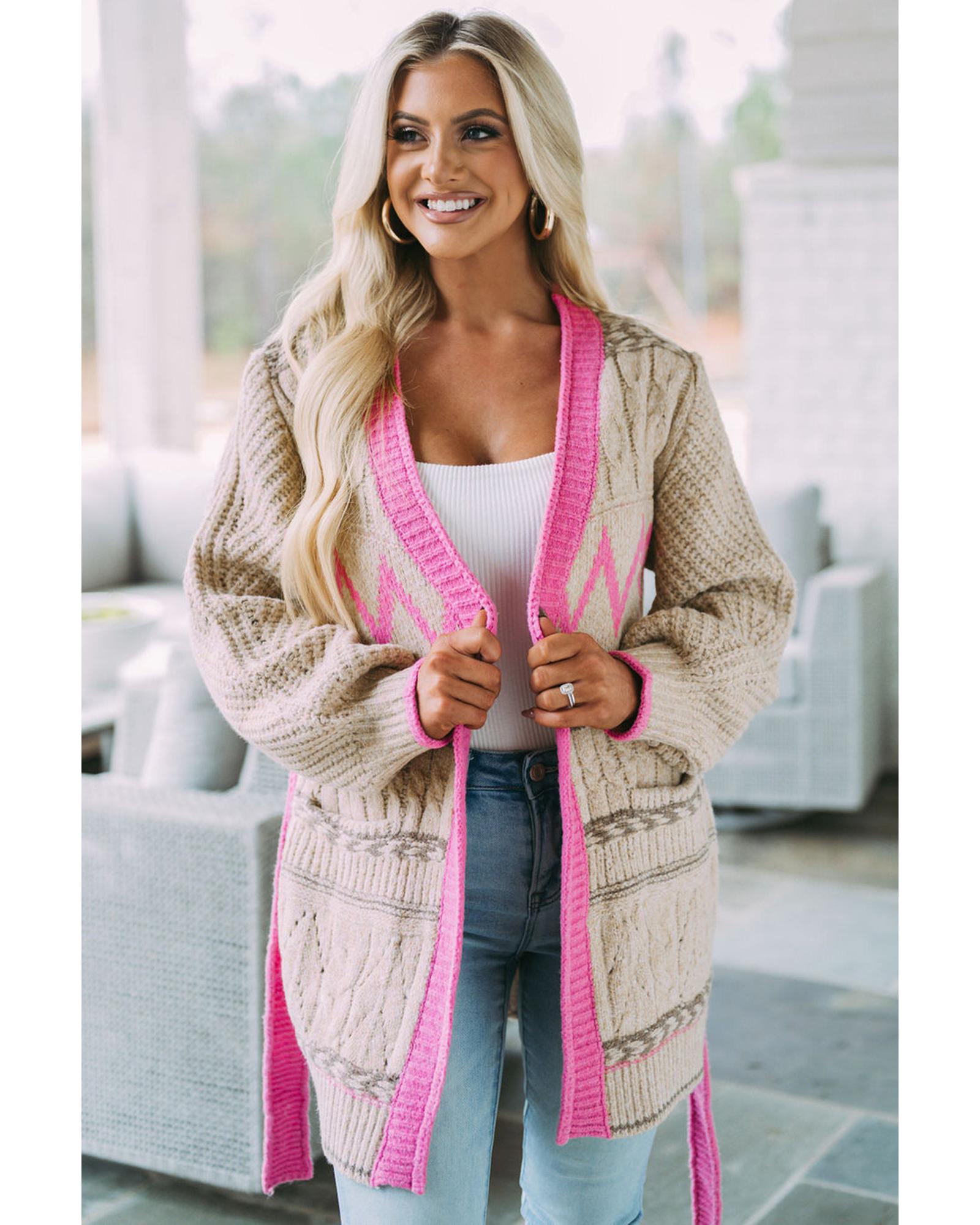 Gray Geometric Cable Knit Pocketed Open Front Cardigan – XL