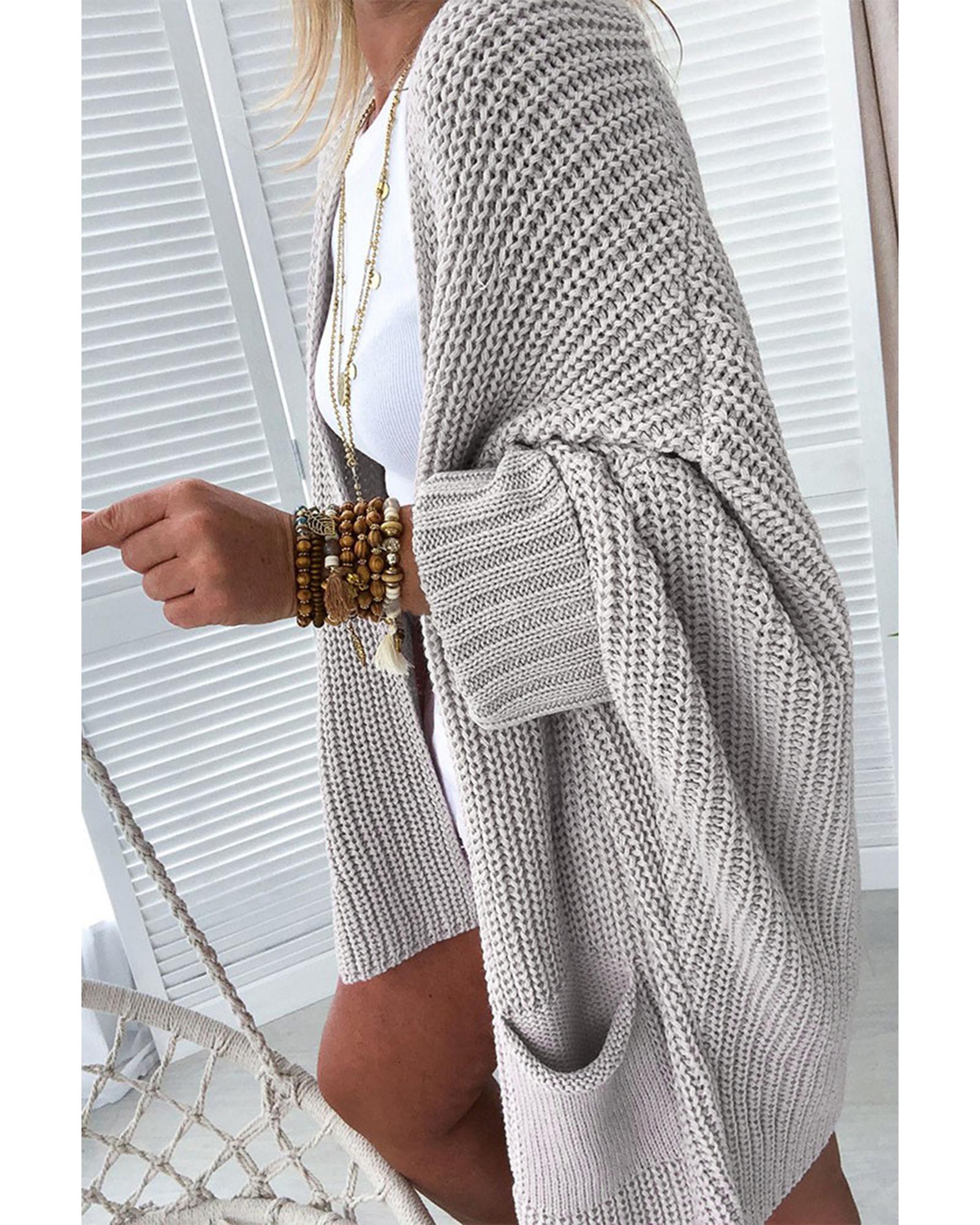 Gray Oversized Fold Over Sleeve Sweater Cardigan – M