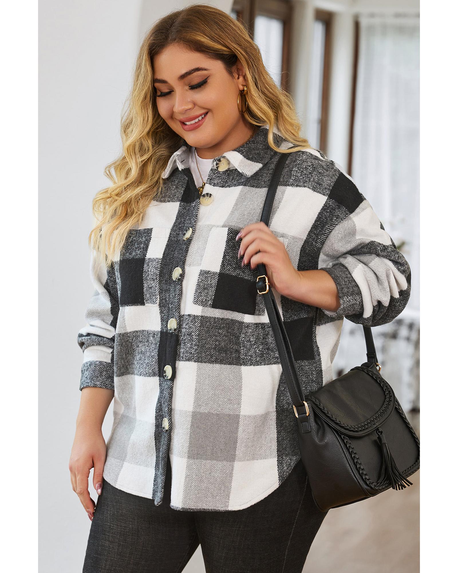 Gray Plus Size Checkered Button-Up Shacket – 2X