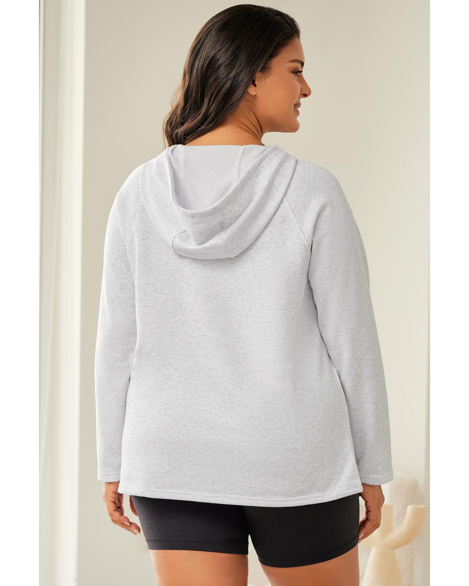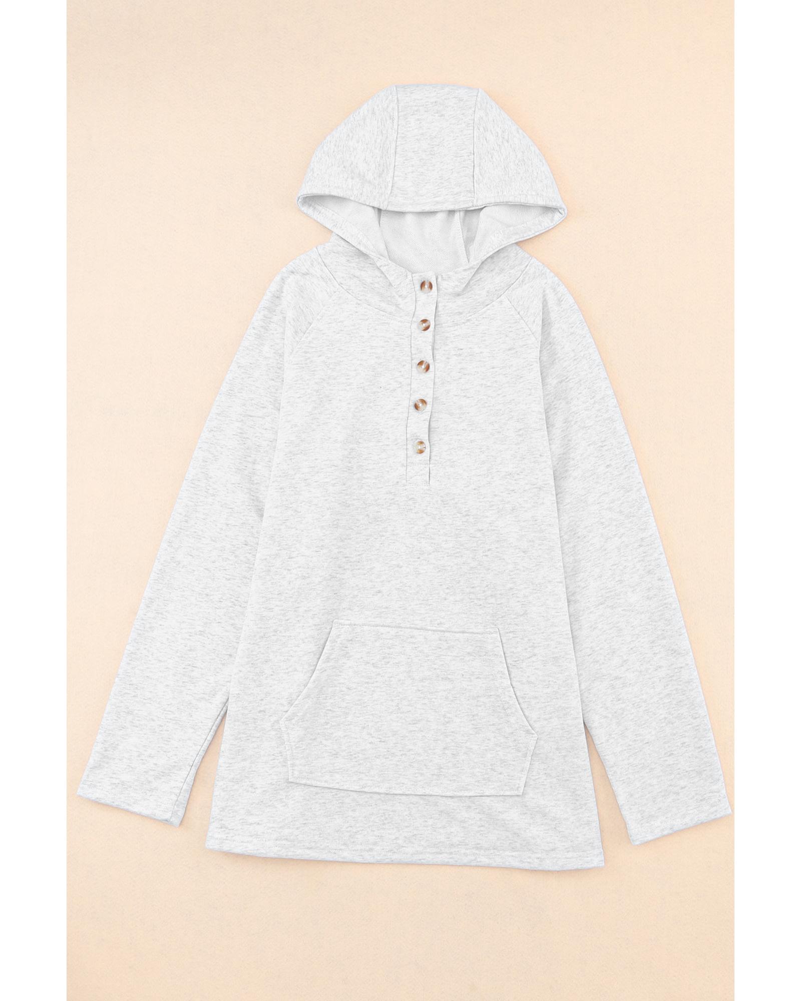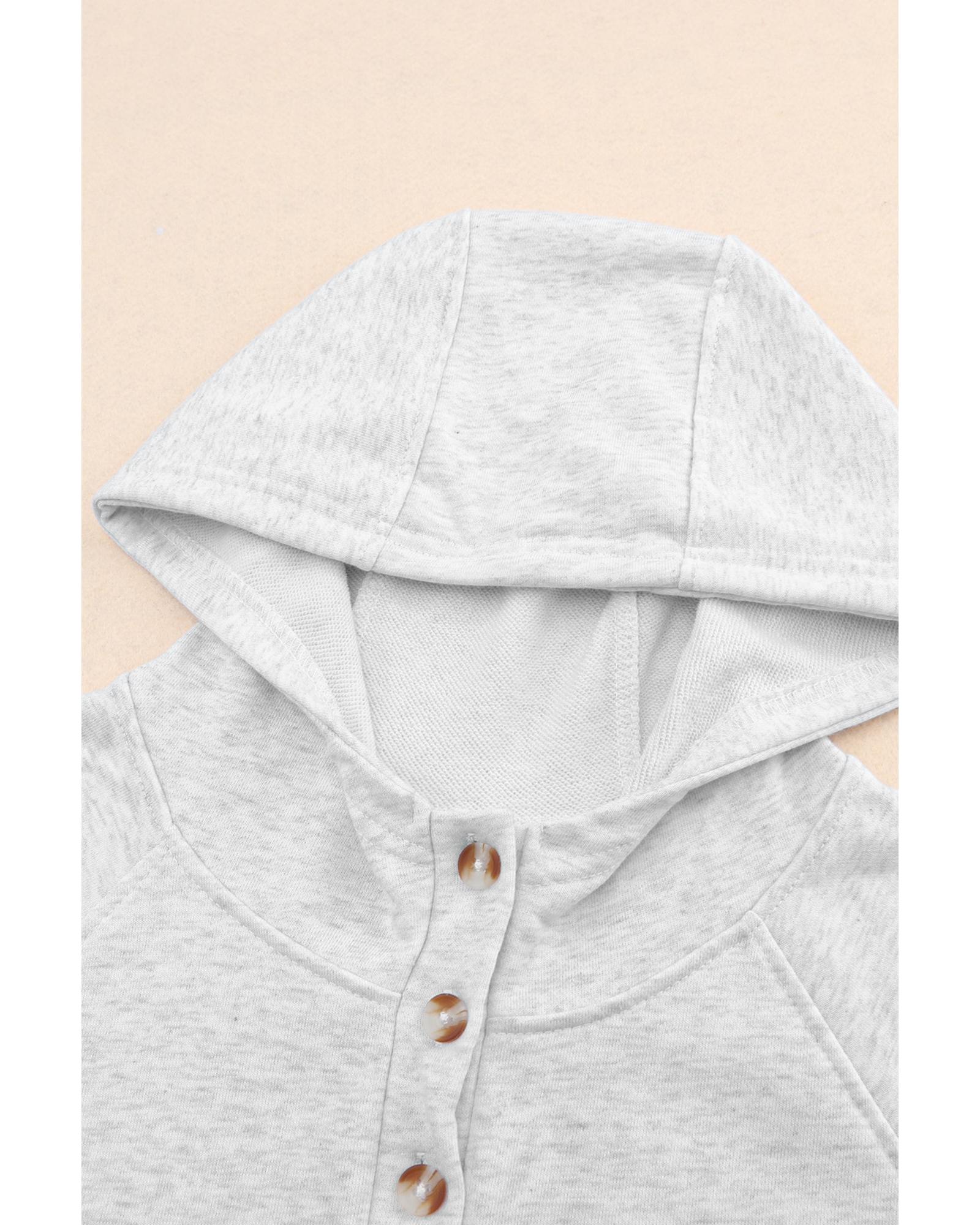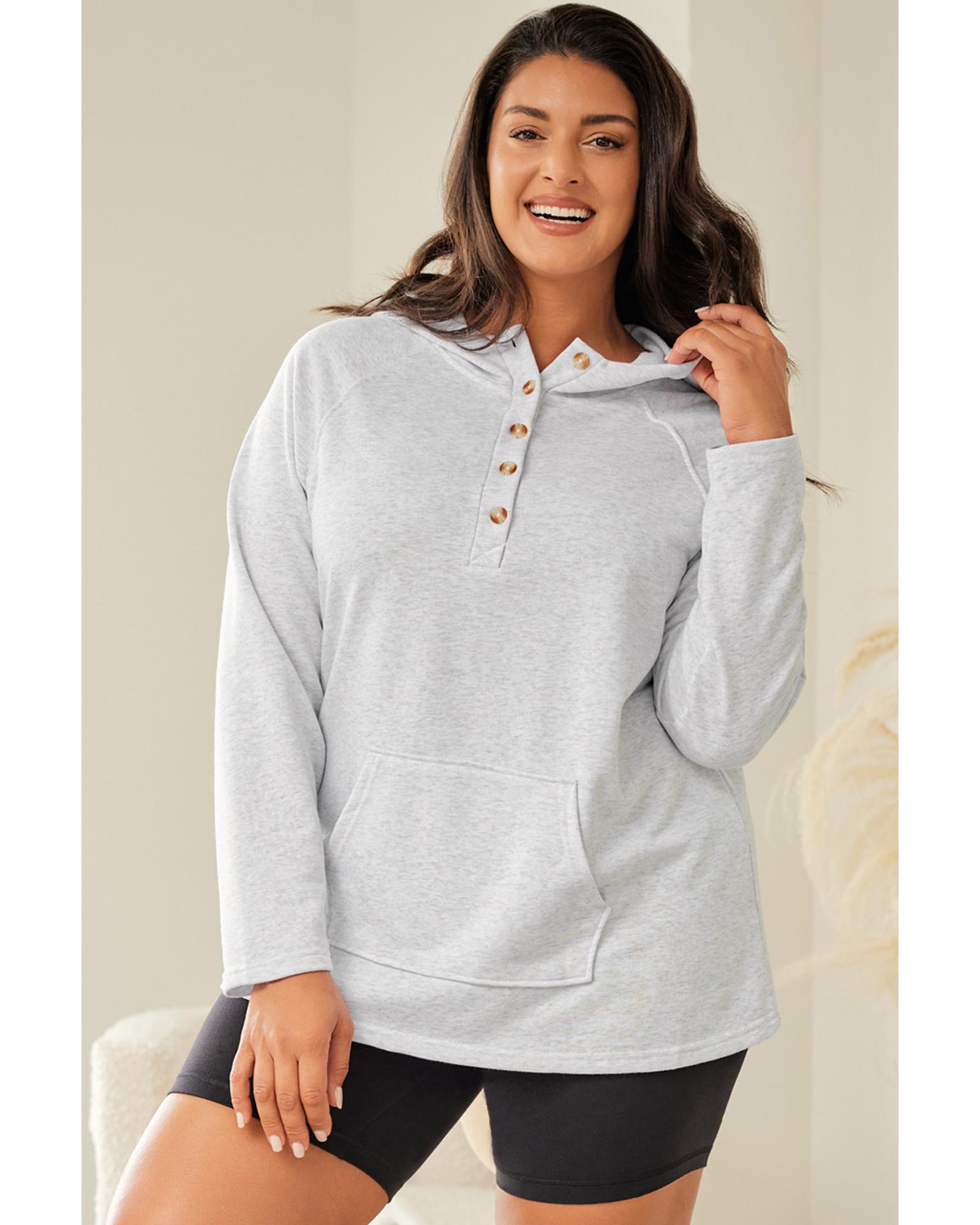 Gray Plus Size Kangaroo Pocket Henley Button Hoodie – 2X