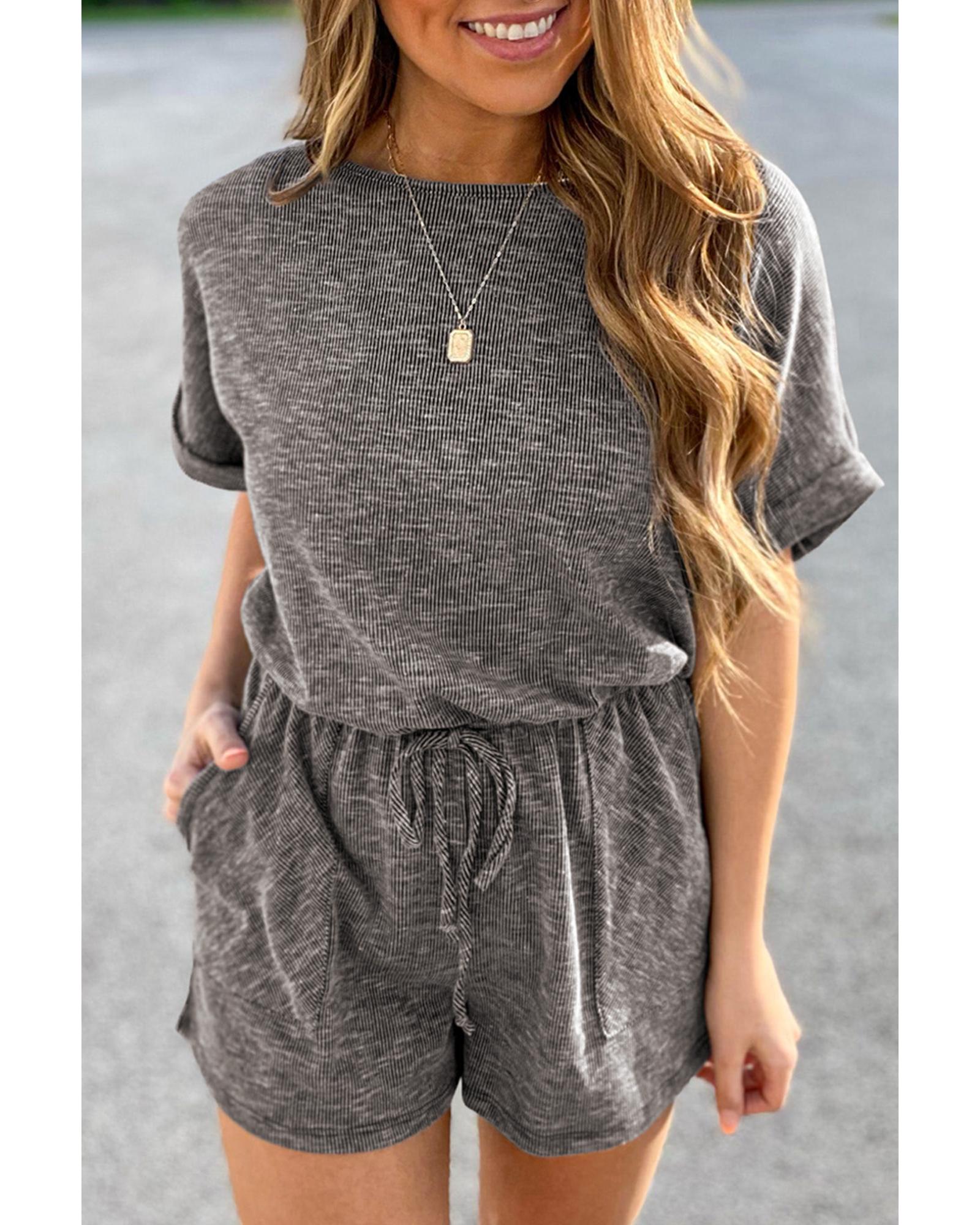 Beau Blue Striped Accent Pullover and Shorts Two Piece Casual Set - L