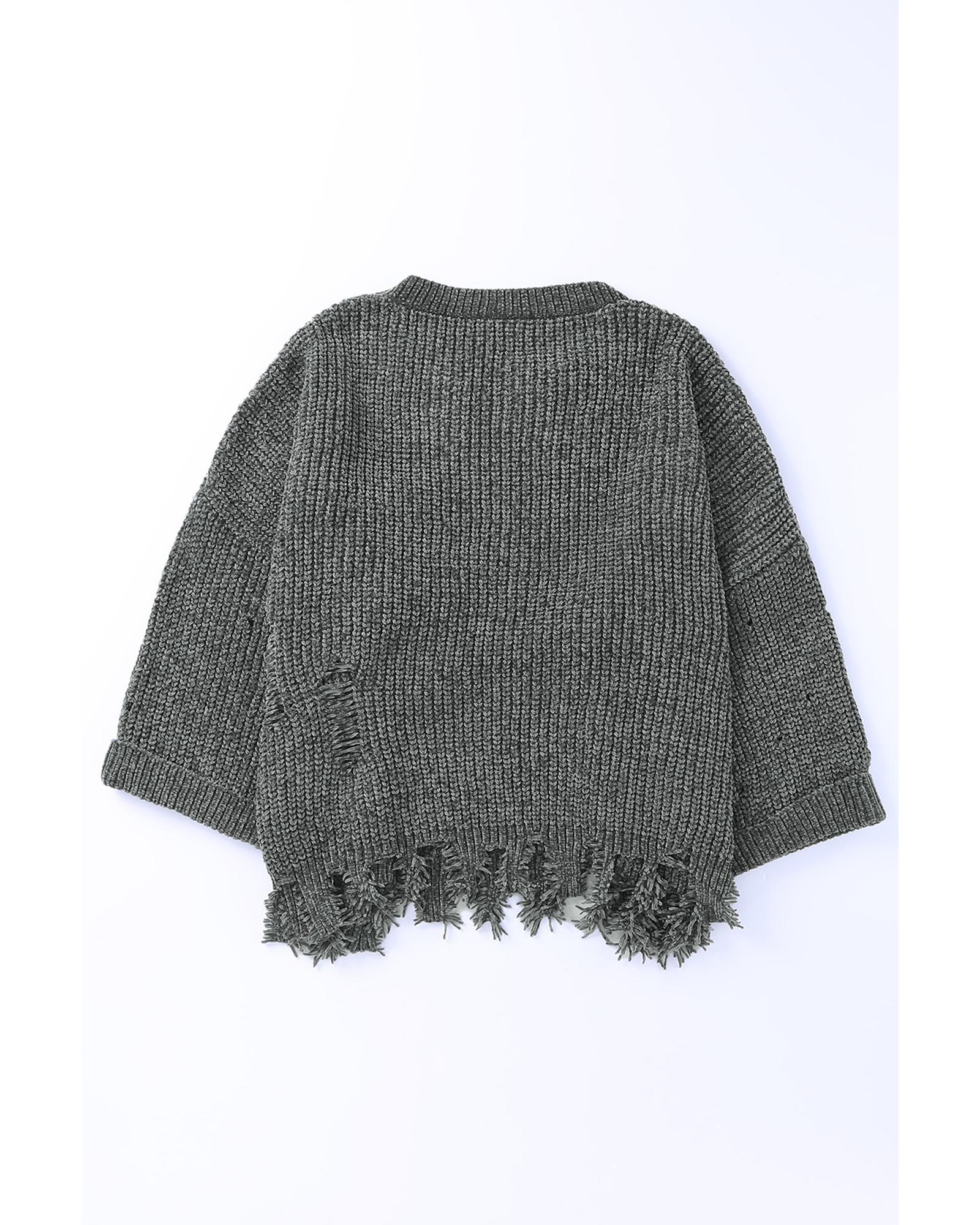Gray Ripped Raw Hem Chunky Pullover Sweater – 2XL