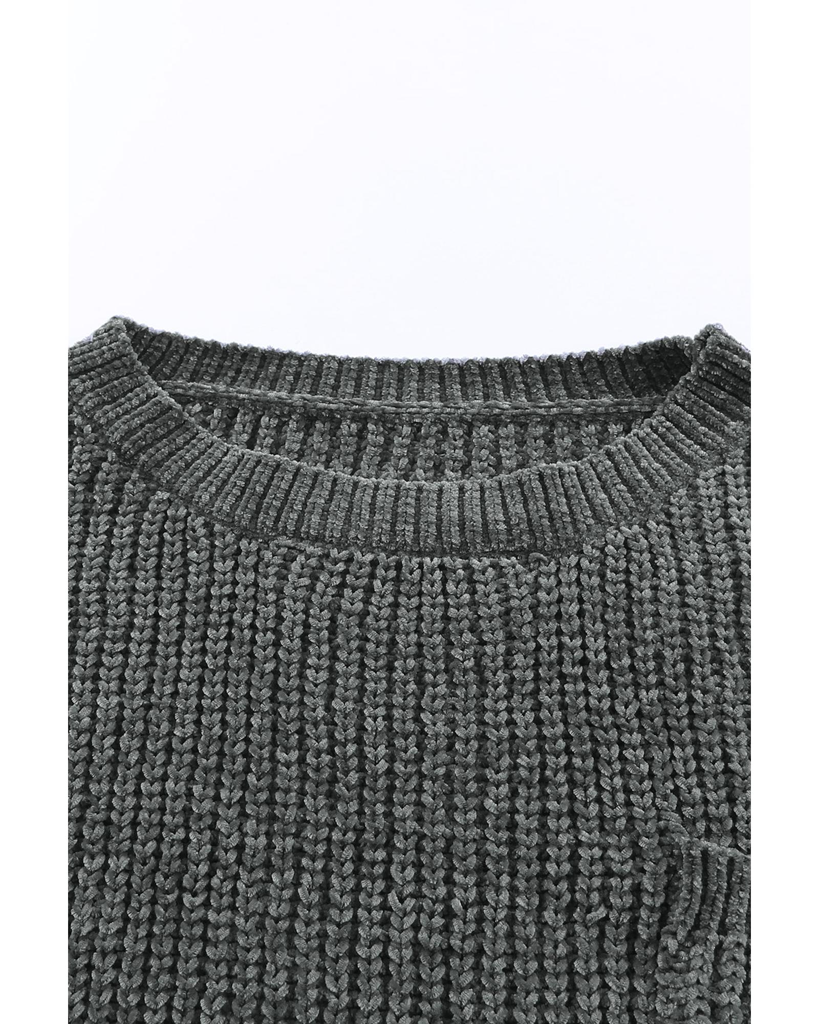 Gray Ripped Raw Hem Chunky Pullover Sweater – XL