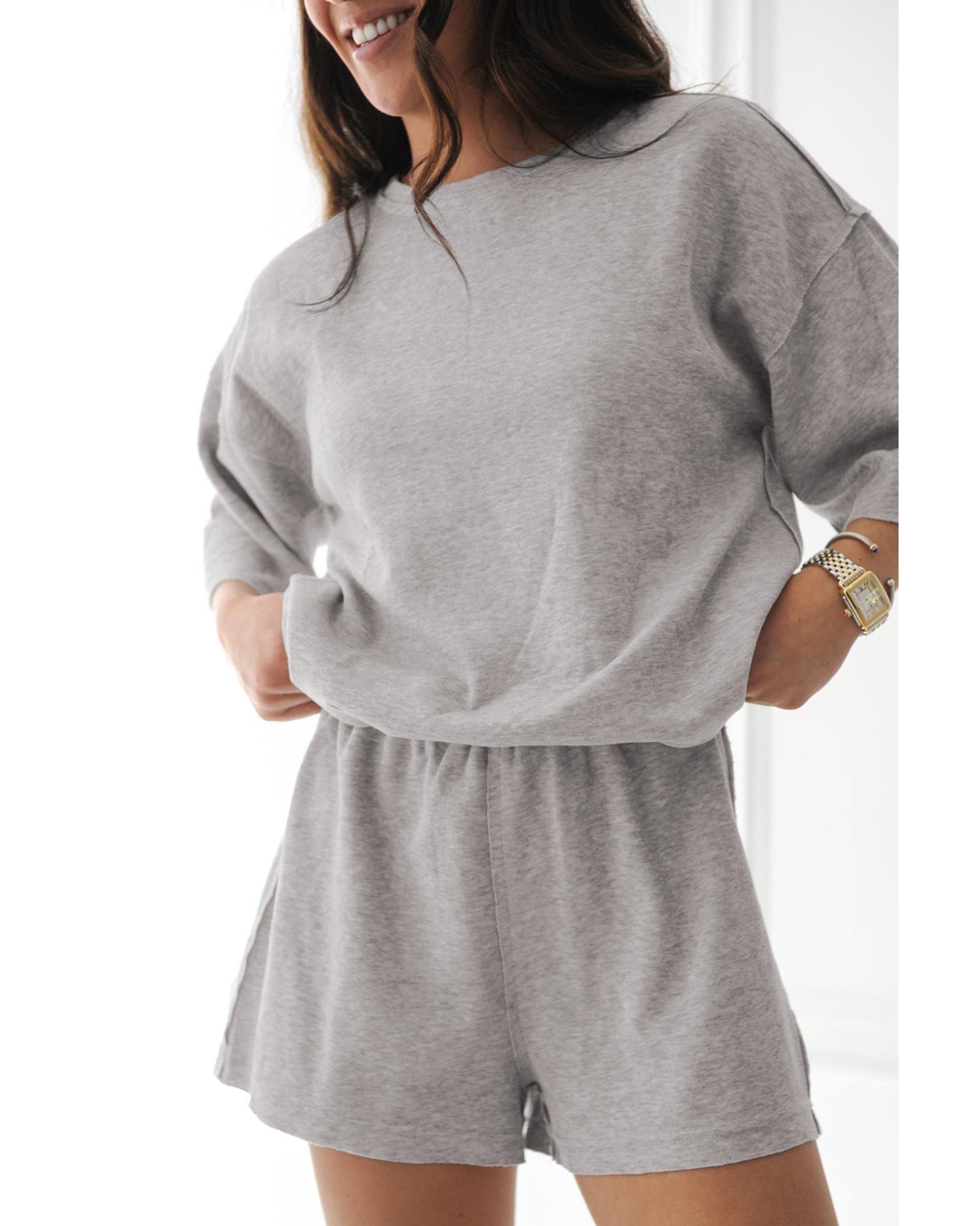 Gray Solid Color Loose Tee 2 Piece Shorts Set – M