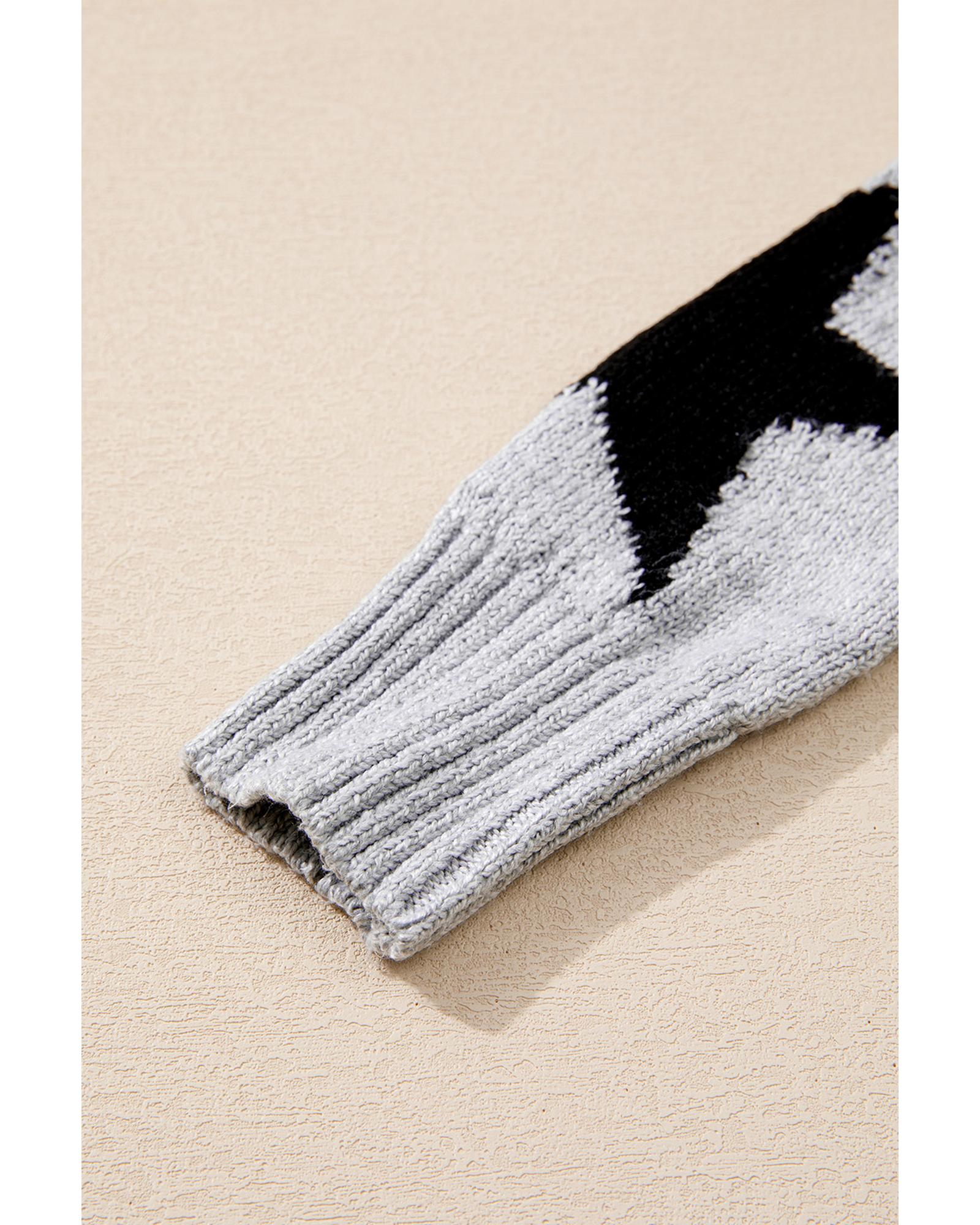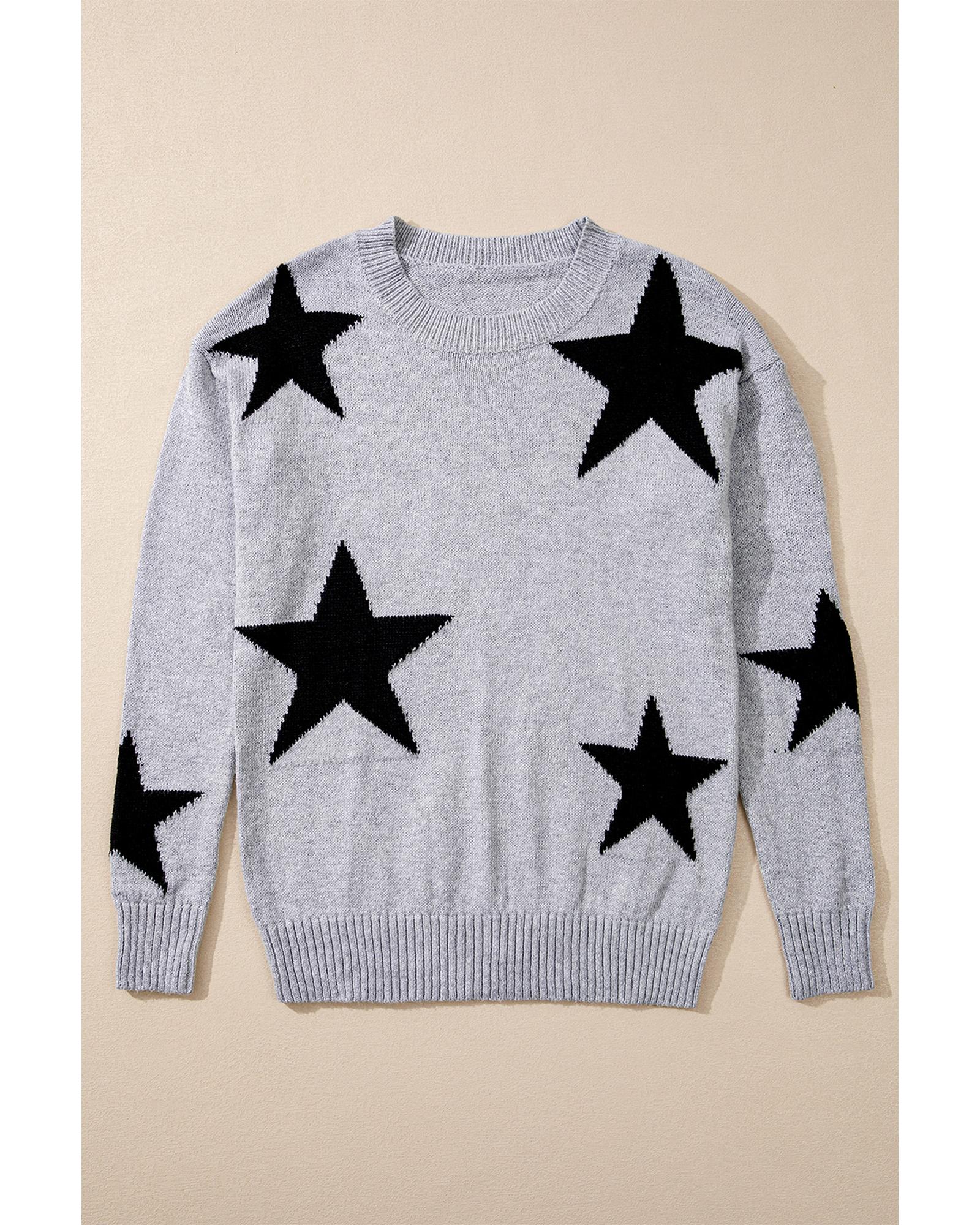 Gray Star Pattern Drop Shoulder Sweater – M