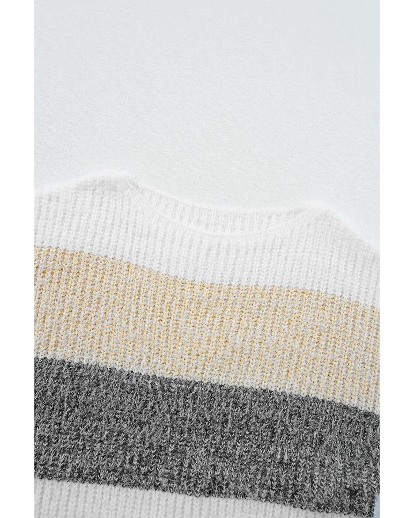 Gray Stripe Colorblock Bubble Sleeve Drop Shoulder Sweater Dress – L