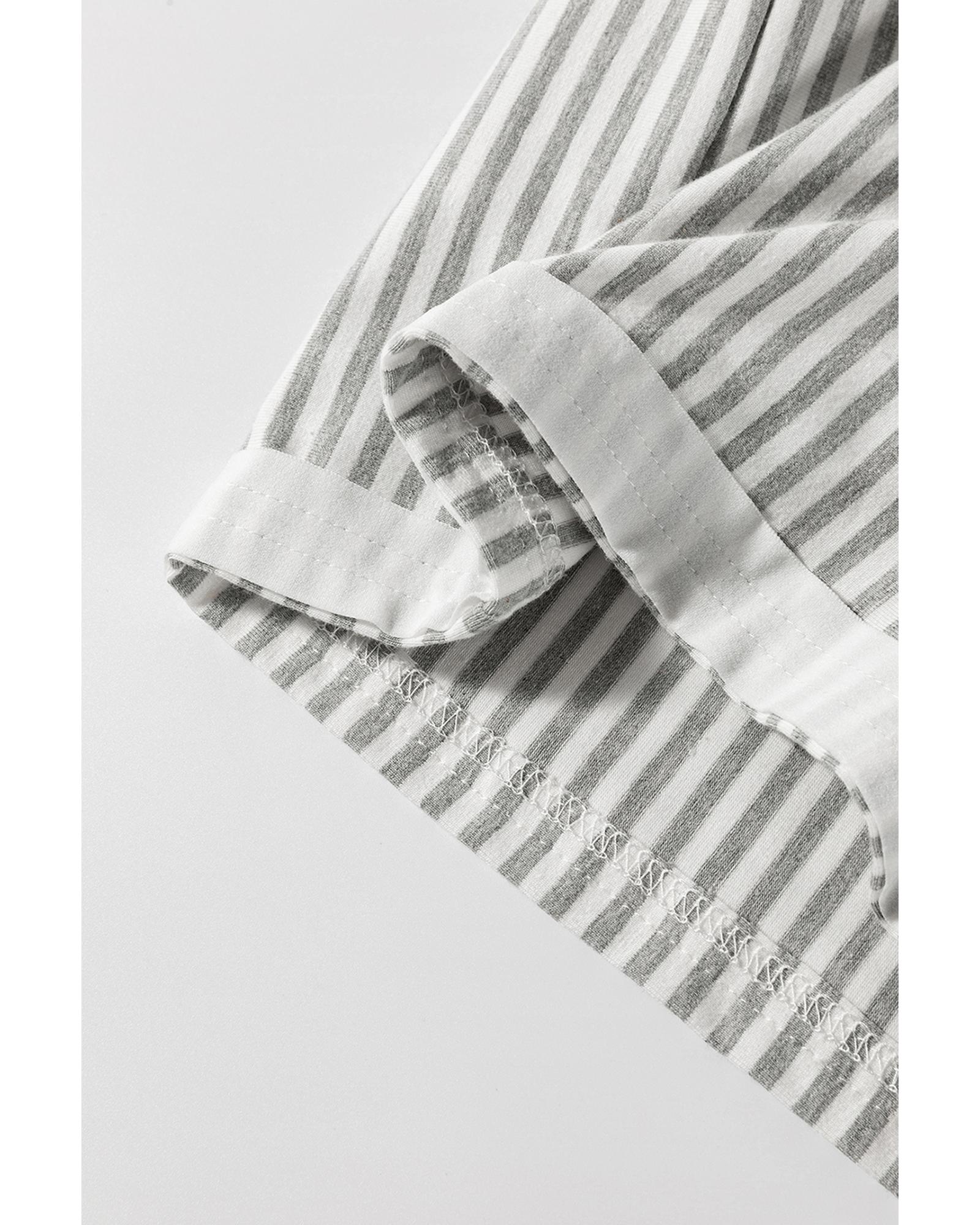 Gray Stripe Mixed Print Short Sleeve Top and Pocketed Shorts Set – S