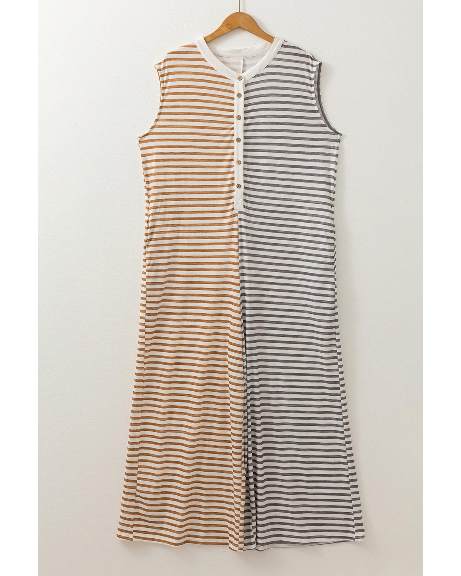 Gray Stripe Plus Size Color Block Buttoned Sleeveless Wide Leg Jumpsuit – 2X