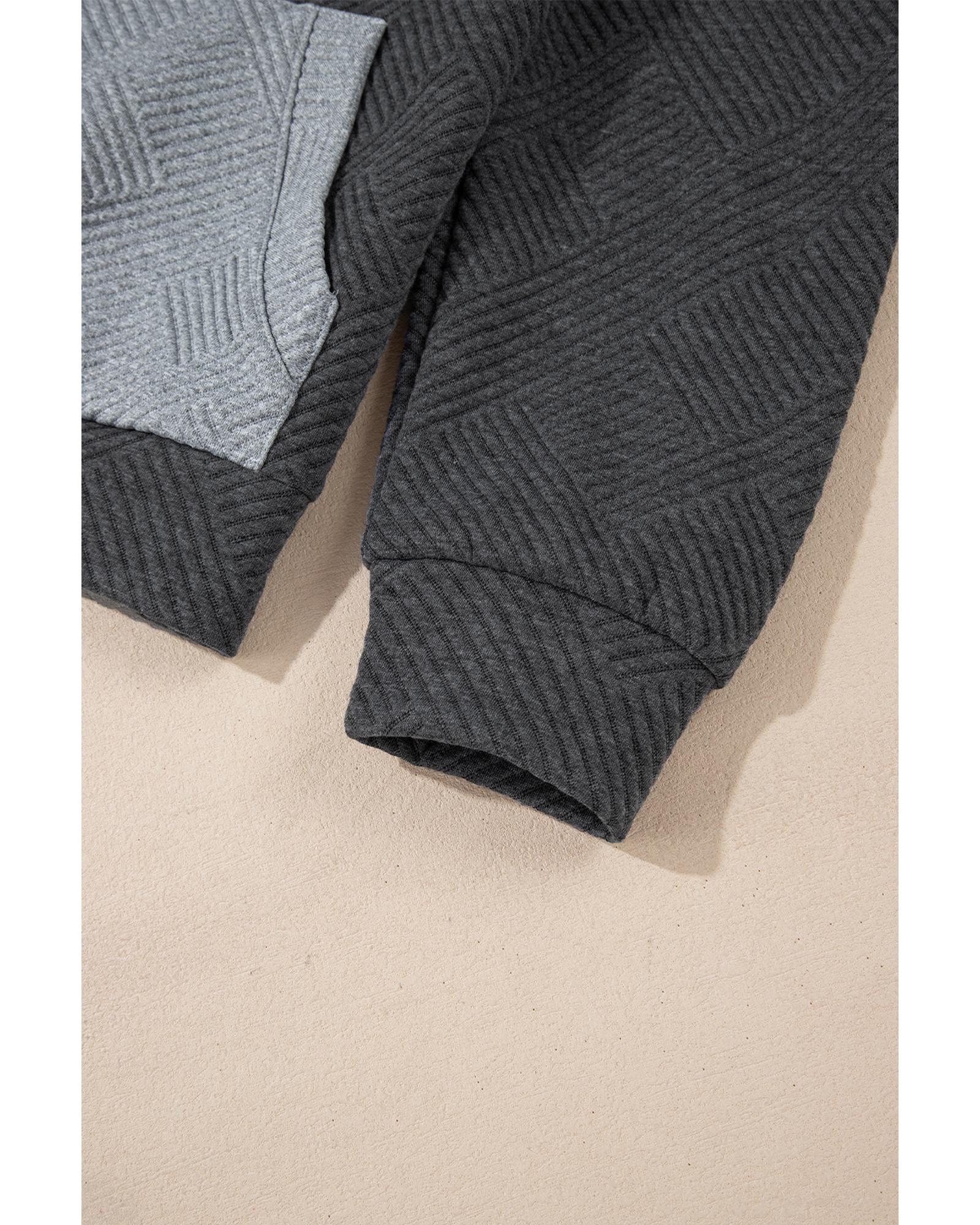 Gray Textured Color Block Kangaroo Pocket Drop Shoulder Hoodie – XL