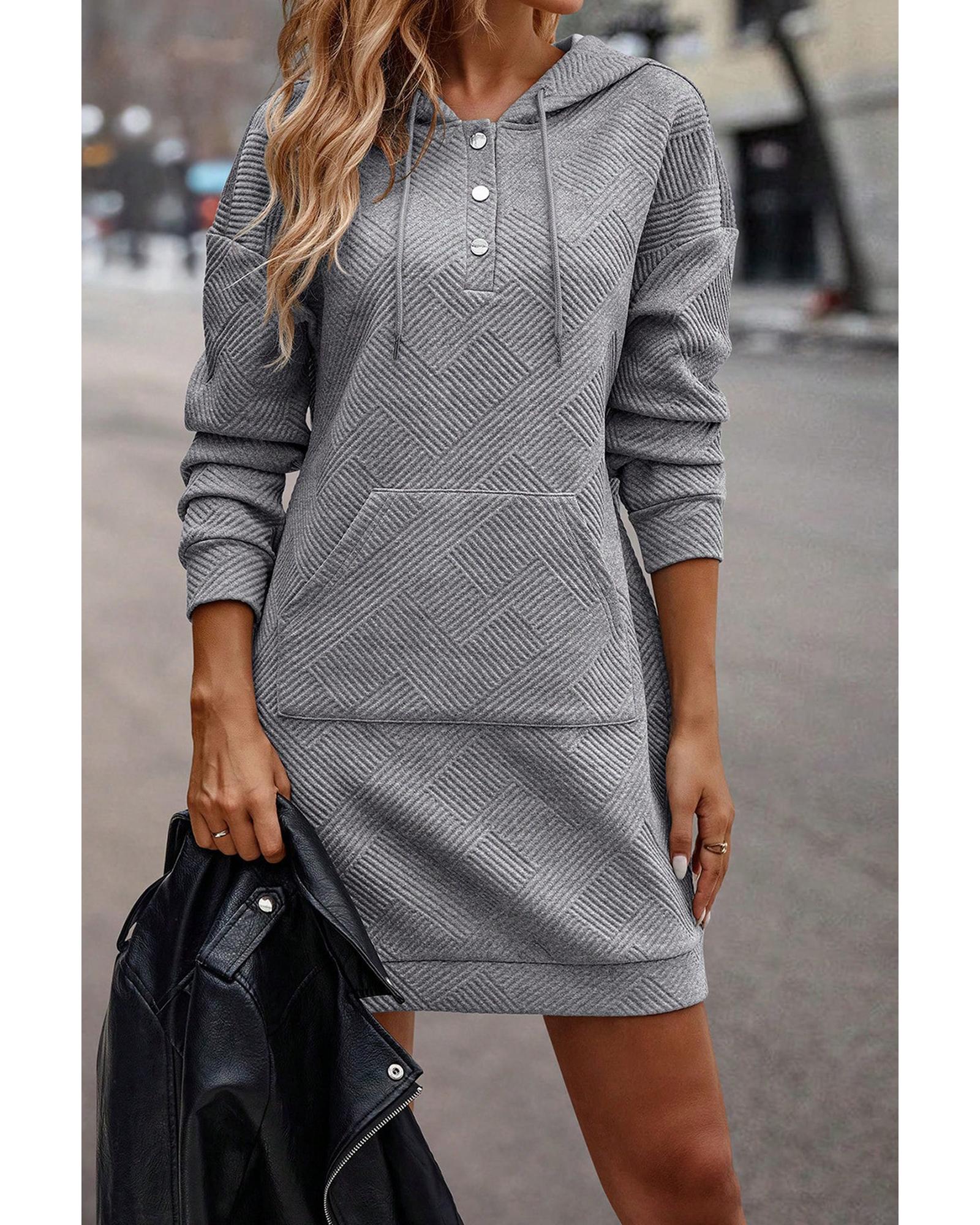 Gray Textured Kangaroo Pocket Drawstring Hooded Mini Dress – XL